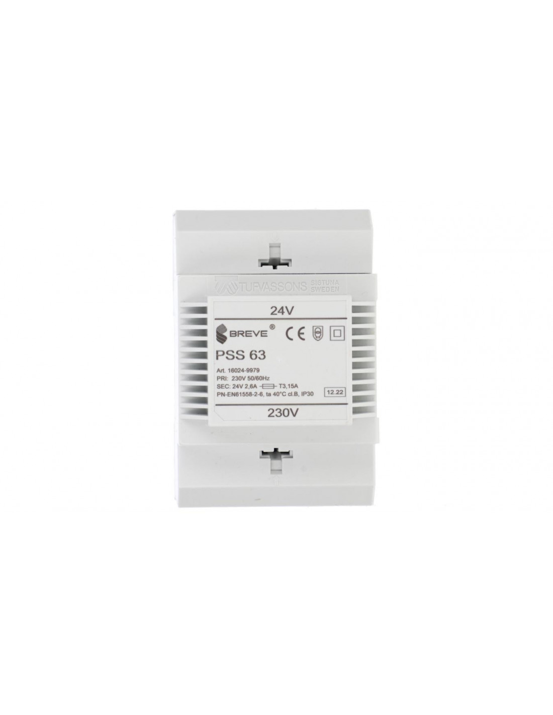 Breve Tufvassons jest polską firmą, której korzenie sięgają 1989 roku. Została założona przez trójkę polskich przedsiębiorców, którzy do dziś trzymają pieczę nad jej działalnością. Koncern od początku swojej działalności zajmował się produkcją i dostarczaniem do klientów najwyższej jakości transformatorów. Z czasem swój asortyment rozszerzył o zasilacze, dławiki i regulatory prędkości wentylatorów. Jeden z transformatorów oferowanych przez Breve charakteryzuje się głębokością równą 72 mm. Podobną wartość osiąga szerokość artykułu. Wysokość ma za to wartość liczącą 110 mm. Urządzenie zostało wykonane w wersji modułowej, dzięki czemu jego montaż będzie łatwy i szybki. Transformator jest odporny na zwarcia. Wykonany został jako transformator bezpieczeństwa. Stopień ochrony IP30 informuje o stosunkowo niskiej ochronie przed wnikaniem czynników zewnętrznych. Woda i pyły mogłyby niekorzystnie wpłynąć na dalszą pracę aparatury. Klasa materiału izolacyjnego zgodnie z IEC 85 określona została jako klasa B. Urządzenie prawidłowo i bezpiecznie działa przy napięciu pierwotnym, które liczy 230 V. Napięcie wtórne z kolei jest równe 24 V. Znamionowa moc pracy transformatora to 63 W.