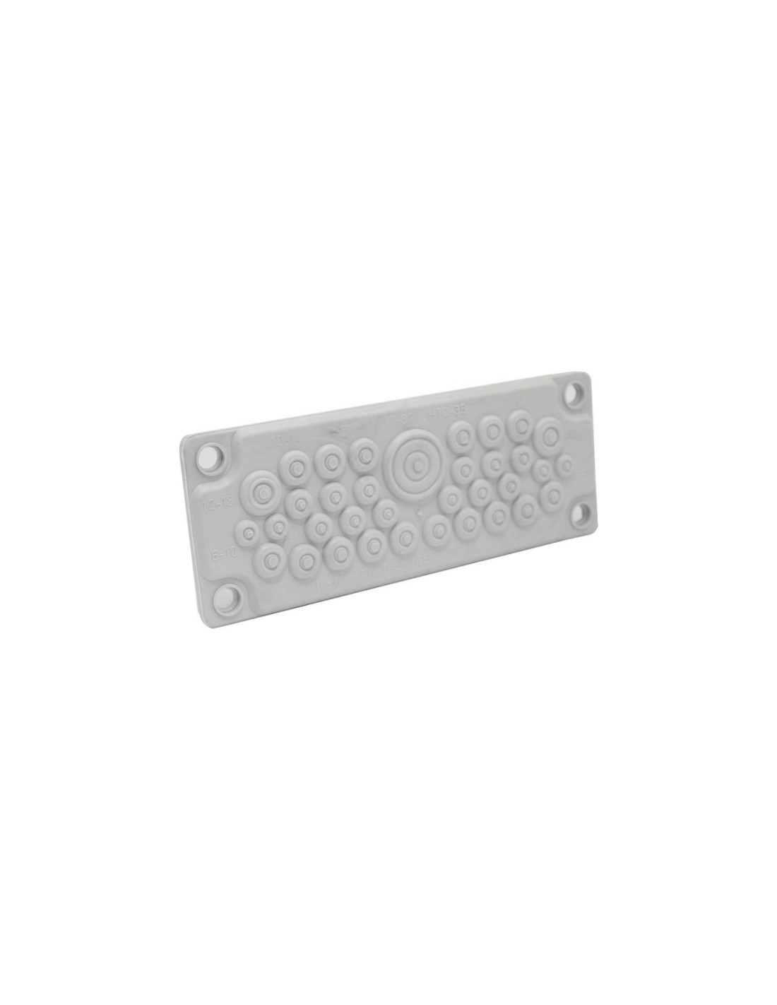 Przepust dławiący HTB-35 w kolorze szarym to specjalny przepust z tworzywa sztucznego z tłoczonym wzmocnieniem staowym i wstępnie przygotowanymi przepustami kablowymi o kompaktowej konstrukcji. Przeznaczony do przewodów o średnicy od 6 mm2 do 32 mm2. Maksymalna ilość podłączonych kabli wynosi 35. Zakres temperatury pracy od -40 °C do +100°C. Przepust dławiący posiada stopień ochrony IP 65.