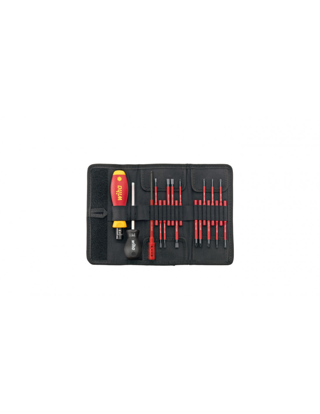 Spelnienie oczekiwan : Dowolnie nastawiany moment dokrecania zapewnia duzy zakres zastosowania narzedzia. Latwiejsza praca : Wszystkie urzadzenia przechowywane w sposób bezpieczny i uporzadkowany w wytrzymalej torbie. Nizsze koszty : Wlasciwy moment dokrecania chroni przed roszczeniami gwarancyjnymi. Wieksze bezpieczenstwo : Bity Wiha slimBit gwarantuja dobry i zabezpieczony dostep do gleboko polozonych srub. Ochrona zdrowia : Opatentowane wzornictwo rekojesci SoftFinish chroniace rece i miesnie w trakcie wykonywania prac. Rozwiazanie polecane przez lekarzy i terapeutów stowarzyszenia AGR! Wyzsza efektywnosc pracy : Wlasciwy moment dokrecania chroni przed uszkodzeniami materialu i kosztownymi poprawkami. Pelna ochrona : Kazde narzedzie testowane pojedynczo napieciem 10 000 V AC i dopuszczone do uzycia pod napieciem 1000 V AC. Kontrolowany sposób dokrecania srub przy jednoczesnym zachowaniu bezpieczenstwa pracy przy urzadzeniach elektrycznych zapewnia w pelni certyfikowany system dynamometryczny TorqueVario®-S VDE. Zestaw narzedzi obejmuje ergonomicznie uksztaltowany uchwyt wkretaka dynamometrycznego ze zintegrowana skala numeryczna, 15 bitów typu slimBit, uchwyt na bity oraz narzedzie nastawcze. Wszystkie te komponenty sa rozmieszczone w sposób praktyczny i przejrzysty w wysokiej jakosci torbie odpornej na zuzycie. Wkretak dynamometryczny VDE dzieki momentowi dokrecania regulowanemu w zakresie 0,8-5,0 Nm znajduje szerokie zastosowanie. Wyraznie slyszalny i odczuwalny sygnal przylozenia momentu obrotowego zapewnia niezawodne dzialanie tego mechanizmu, które chroni przed uszkodzeniem materialu oraz zapobiega niepotrzebnemu nakladowi pracy. Przy dokladnosci zadzialania +/- 6% to narzedzie dynamometryczne spelnia wymogi normy DIN EN ISO 6789. Izolowany uchwyt na bity ClicFix dzieki zastosowaniu mechanicznej blokady trzonka zapewnia pewny chwyt bitów slimBit o dlugosci 75 mm. Zarówno wkretak dynamometryczny, jak równiez bity typu slimBit poddawane sa kontroli jednostkowej zgodnie z miedzynarodowa norma IEC 60900 i umozliwiaja bezpieczna prace przy czesciach znajdujacych sie pod napieciem do 1000 V AC. Normy : Produkowany zgodnie z IEC 60900.DIN EN ISO 6789. Zastosowanie : Sluza one do kontrolowanego wykonywania polaczen srubowych w obszarze czesci pod napieciem do 1000 V AC, np. w przypadku przyrzadów rozdzielczych. 1 x Adapter TorqueVario-S electric do bitów slimBit (35870) 6 mm, 170 mm 1 x Bit slimBit electric Phillips (34583) PH1 x 75 mm 1 x Bit slimBit electric Phillips (34584) PH2 x 75 mm 1 x Bit slimBit electric plaski (34578) 2,5 mm x 75 mm 1 x Bit slimBit electric plaski (34581) 5,5 mm x 75 mm 1 x Bit slimBit electric plaski (34582) 6,5 mm x 75 mm 1 x Bit slimBit electric plaski (41159) 3,5 mm x 75 mm 1 x Bit slimBit electric PlusMinus/Pozidriv (34589) SL/PZ1 x 75 mm 1 x Bit slimBit electric PlusMinus/Pozidriv (34590) SL/PZ2 x 75 mm 1 x Bit slimBit electric Pozidriv (34585) PZ1 x 75 mm 1 x Bit slimBit electric Pozidriv (34586) PZ2 x 75 mm 1 x Bit slimBit electric TORX® (35507) T10 x 75 mm 1 x Bit slimBit electric TORX® (35508) T15 x 75 mm 1 x Bit slimBit electric TORX® (35509) T20 x 75 mm 1 x Bit slimBit electric TORX® (36071) T25 x 75 mm 1 x Bit slimBit electric TORX® (41160) T9 x 75 mm 1 x Narzedzie nastawcze do wkretaków dynamometrycznych z rekojescia podluzna (26864) 146 mm 1 x Wkretak dynamometryczny TorqueVario®-S electric z regulowanym momentem dokrecania (26626) 0,8-5,0 Nm, 3,8 mm