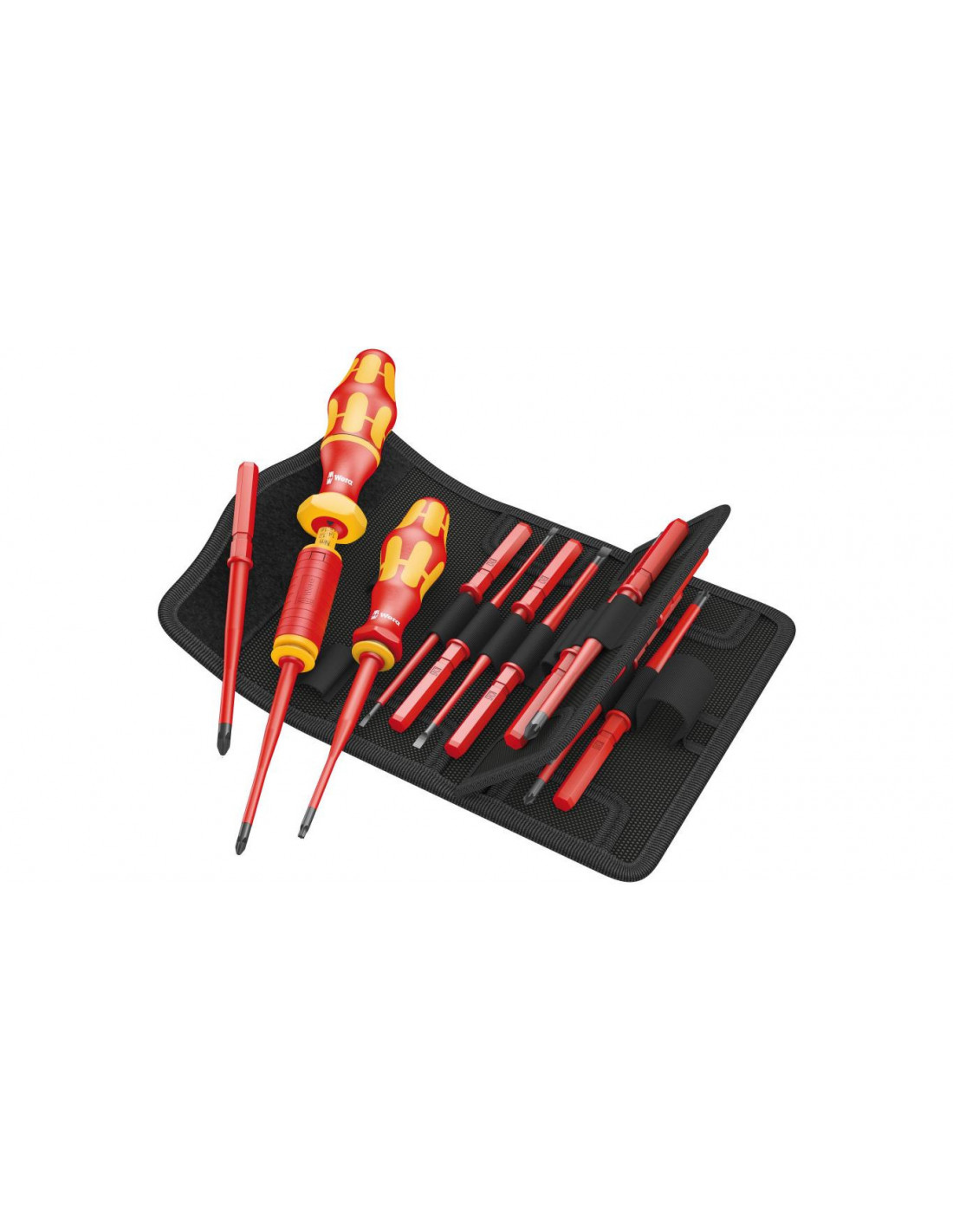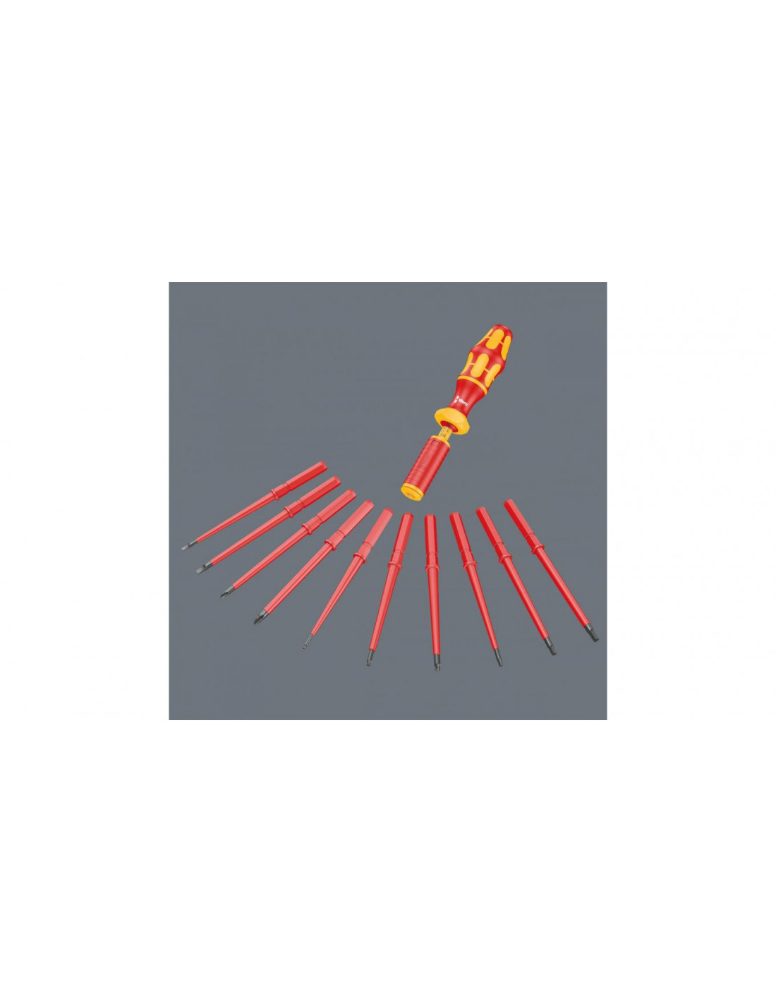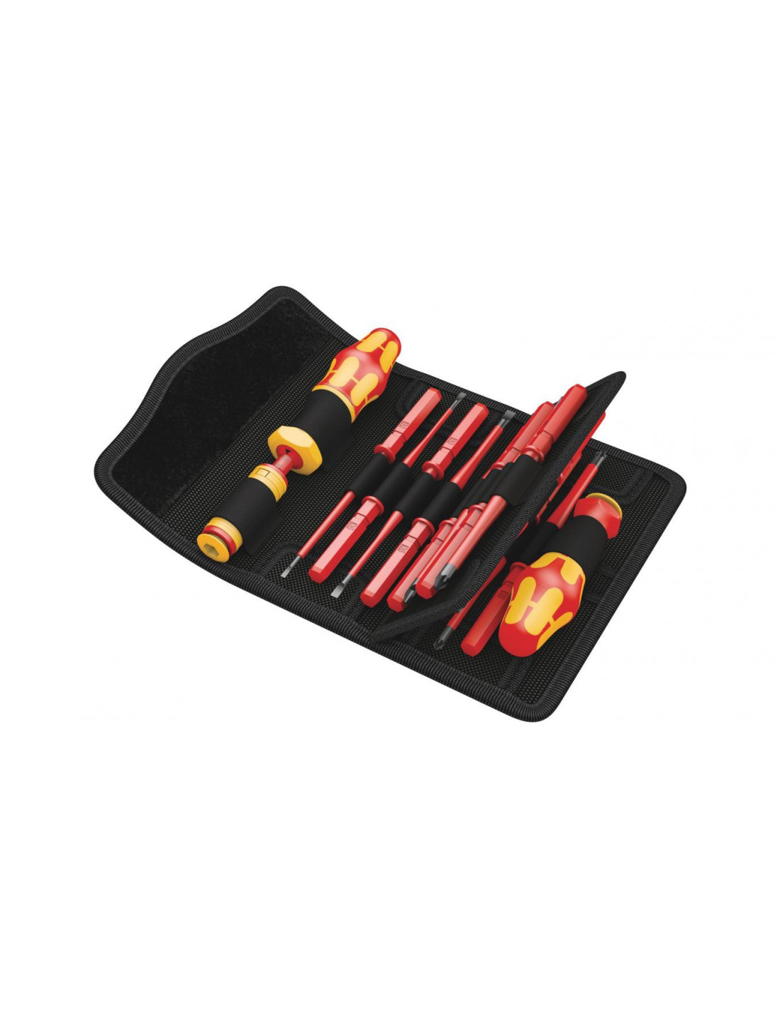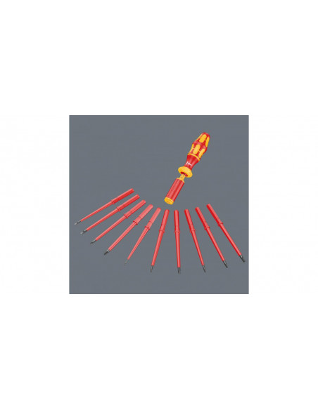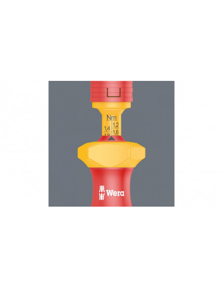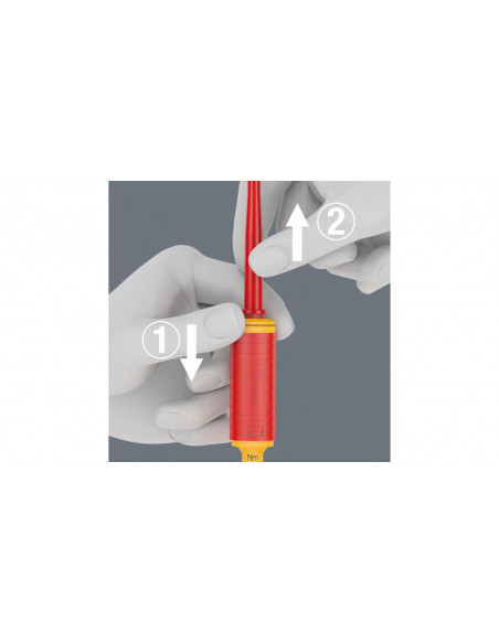 16-częściowy zestaw wymiennych trzpieni VDE z rękojeścią dynamometryczną nastawną. 14 trzpieni wymiennych (z czego 11 ze zredukowaną średnicą) i zintegrowaną izolacją. Rękojeść dynamometryczna z regulacją momentu obrotowego w zakresie 1,2-3,0 Nm. Ergonomiczna rękojeść Kraftform złożona z twardych stref chwytu umożliwiających szybki montaż oraz stref miękkich zapewniających przenoszenia wysokich momentów obrotowych.