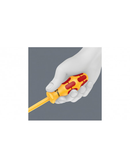 Zestaw wysokiej jakości izolowanych wkrętaków Kraftform VDE. Wielokomponentowa rękojeść Kraftform do szybkiej i bezpiecznej pracy. Końcówka Black Point oraz specjalny proces hartowania zapewniają długi okres użytkowania, zwiększają odporność na korozję i gwarantują precyzyjne dopasowanie narzędzia do gniazda śruby. Indywidualnie kontrolowana izolacja pod napięciem 10000 V gwarantuje bezpieczeństwo pracy pod napięciem 1000 V. 6-kątny kołnierz zapobiegający staczaniu się narzędzia z miejsca pracy. Oznaczenie ułatwiające odnajdywanie i sortowanie narzędzi.