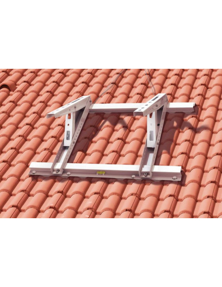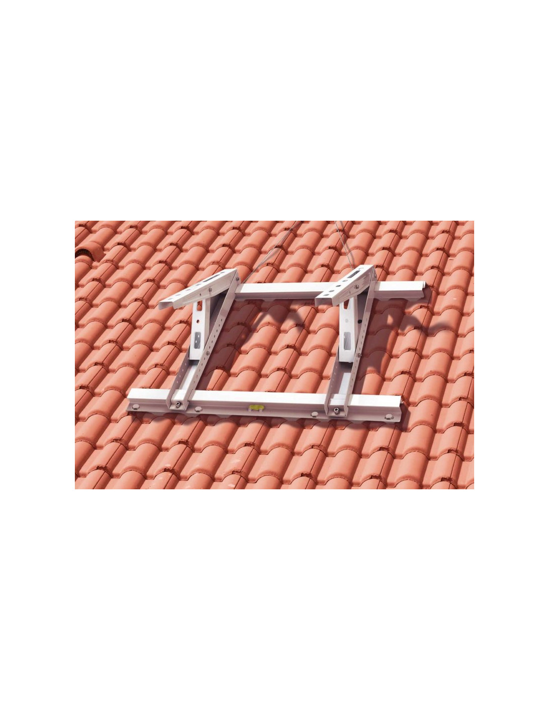 Składany wspornik dachowy MT 650 do mocowania klimatyzatora na stromej połaci dachowej (także na dachówce). Wspornik wykonany jest z metalu, malowany metodą proszkową. Belka wyposażona jest w poziomice ułatwiającą jej prawidłowy montaż. Opakowanie zawiera dwie belki montażowe, dwa regulowane ramiona oraz zestaw montażowy (śruby i podkładki).