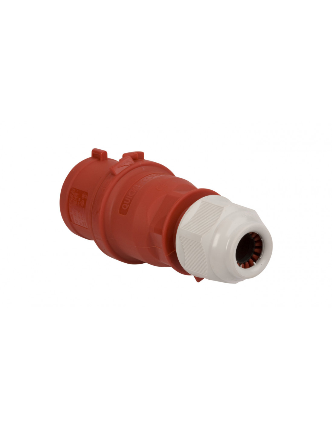 Wtyczka QUICK-CONNECT z zintegrowanym zadławieniem MULTI-GRIP 32A 3P+N+PE 200/346 do 240/415V 6h IP44 50 i 60Hz, Kolor indentyfikacyjny: czerwony RAL 3000 (pokrywa), Izolator/Kontakty: Izolator zintegrowany z obudową, kontakty mosiężne, Przewód mm2 max 6,0 mm2, obudowa z poliamidu, elementy zewnętrzne elementy metalowe , Inne: zadławienie Multi-Grip. zintegrowane odciążenie przewodu dla kabli o średnicy od 11 do max. 23mm