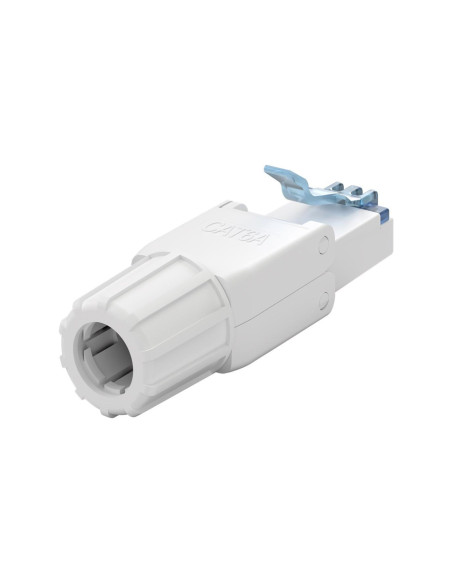Złącze RJ45 nadaje się do zakończenia kabla instalacyjnego CAT 6A w celu stworzenia kabla sieciowego o niestandardowych rozmiarach (prowadzenie kabli: 180°)
