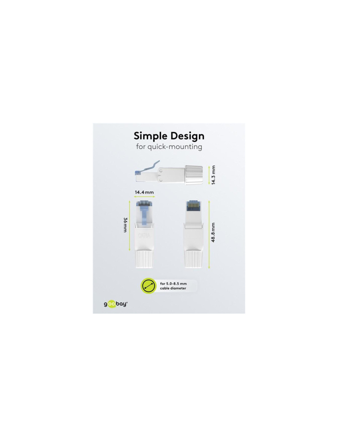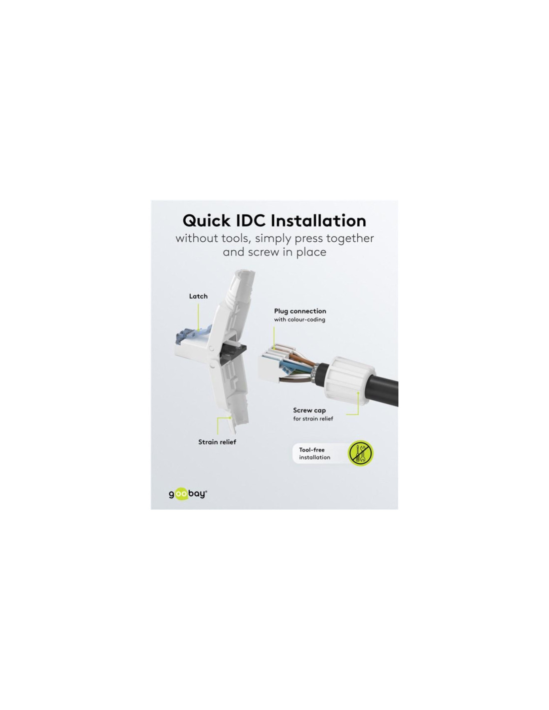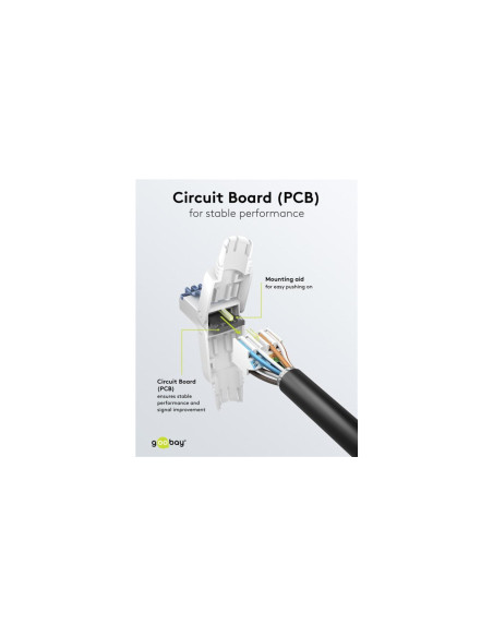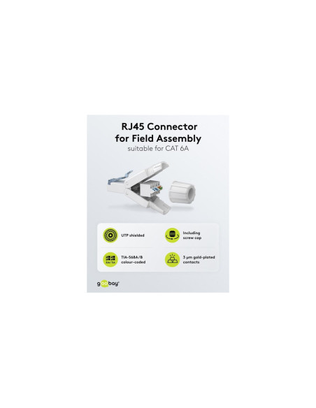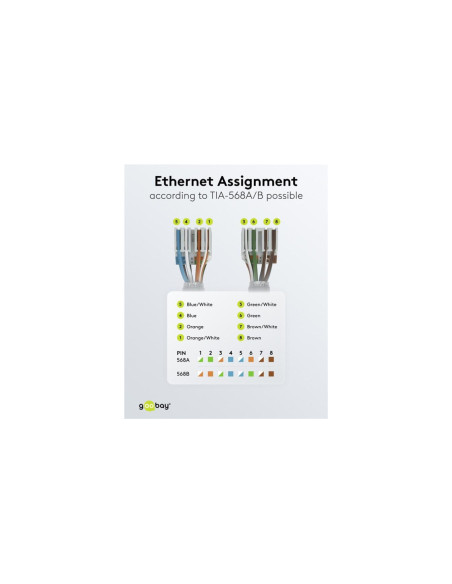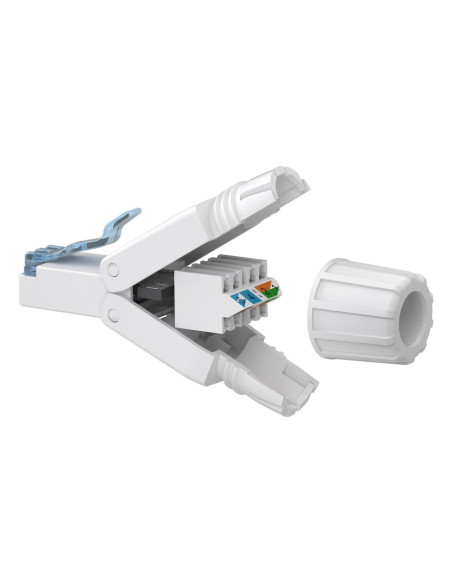 Wtyczka RJ45 oszczędza czas i jest łatwa do zainstalowania na kablu CAT dzięki poręcznemu mechanizmowi składania. Dzięki technologii montażu IDC nie są wymagane żadne dodatkowe narzędzia. Wystarczy umieścić poszczególne przewody na oznaczonych kolorami stykach i zamocować je na miejscu, po prostu dociskając obudowę złącza do siebie.