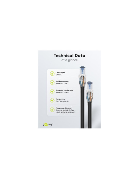 Złącze CAT 6A obsługuje Power over Ethernet (PoE++, 4PPoE, Ultra PoE) zgodnie z IEEE802.3bt, a także 10GBase-T (kompatybilne w dół).
