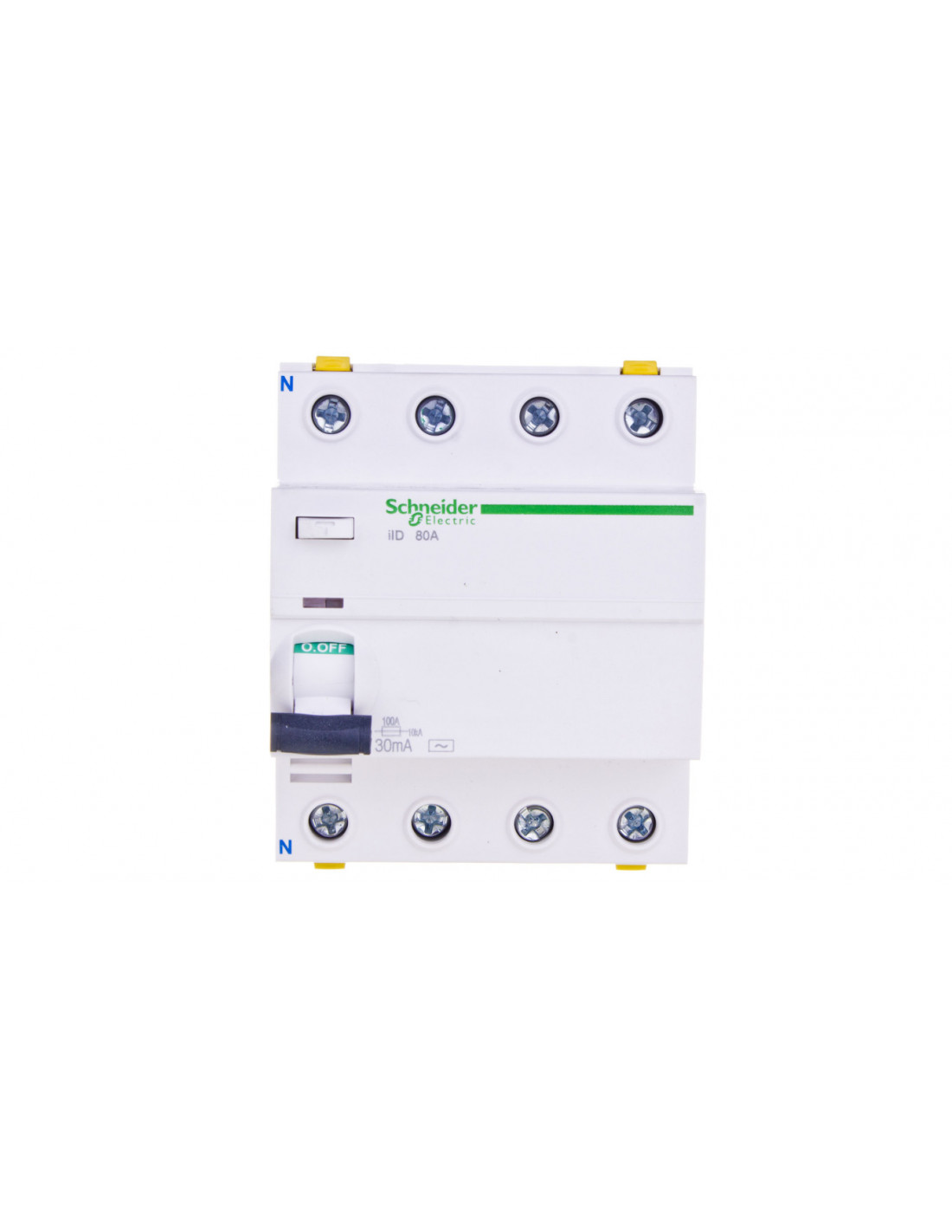 Ten wyłącznik różnicowoprądowy 4-biegunowy pochodzi z kolekcji Acti 9 marki SCHNEIDER ELECTRIC. Jego czułość została oznaczona literami AC. Częstotliwość przy jakiej pracuje to 50/60 Hz. Głębokość wbudowana tego wyłącznika wynosi 70 mm. Posiada 8 modułów. Wymiar obudowy (zgodnie z DIN 43880) został oznaczony na 8. Napięcie znamionowe 1 osiąga 400 V, natomiast napięcie znamionowe 2 - 415 V. Wyłącznik nie posiada ochrony selektywnej i wyzwalania krótkozwłocznego. Odporność na udar prądowy wynosi 0,25 kA. Prąd znamionowy w tym urządzeniu osiąga 80 A. Wyłącznik można zamontować na szynie DIN. IP20, to stopień ochrony jakim się cechuje. Urządzenie będzie odporne na ciała obce o średnicy 12,5 mm, nie jest jednak chronione przed szkodliwym działaniem warunków atmosferycznych dlatego nie powinno się wykorzystywać go na zewnątrz budynków. Znamionowa zdolność zwarciowa wynosi 1,5 kA, natomiast znamionowy prąd różnicowy ma 0,03 A. Dany wyłącznik można dodatkowo wyposażyć. Wytworzył go SCHNEIDER ELECTRIC, który istnieje od polowy XIX wieku i z roku na rok coraz bardziej się rozwija.
