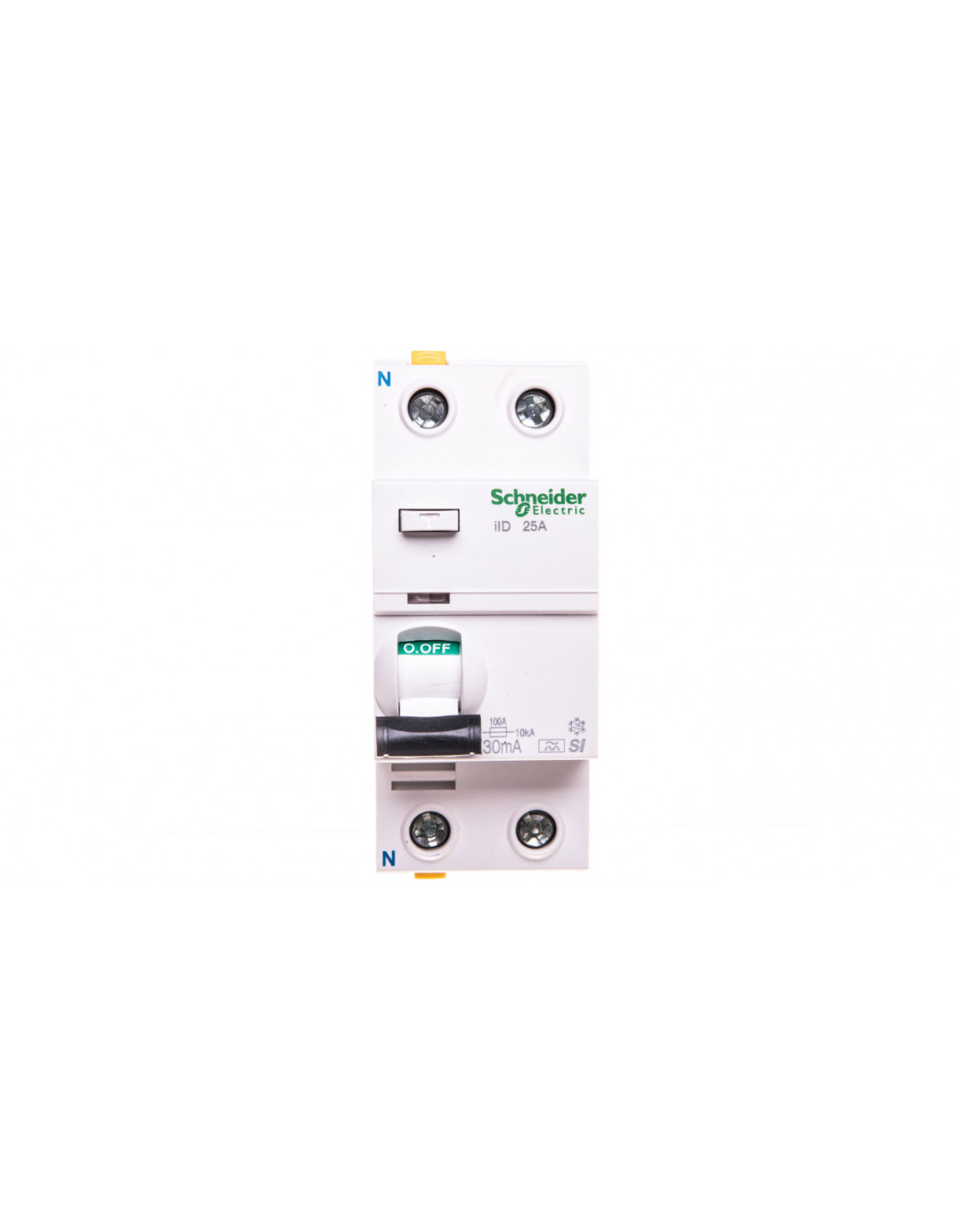 Powyższy wyłącznik różnicowoprądowy pochodzi z niedawno wypuszczonej na rynek kolekcji Acti9. Do kolekcji należą nowoczesne aparaty, które tworzą system modułowy, dzięki któremu rozdział energii będzie prostszy, bezpieczniejszy i bardzie efektywny. Wyłącznik jest 2-biegunowy i posiada 4 moduły. Znamionowa zdolność łączeniowa i zwarciowa wynosi 1500 A zgodnie z EN 61008-1. Częstotliwość przy jakiej pracuje to urządzenie mieści się w zakresie 50-60 Hz. Znamionowe napięcie pracy dochodzi do 230/240 V, natomiast prąd znamionowy jest równy 25 A. Wyłącznikiem można sterować za pomocą dźwigni. Można zamontować go na szynie DIN. Jego wysokość wynosi 91 mm, szerokość 36 mm, natomiast głębokość 73 mm. Stopień zanieczyszczenia został określony cyfrą 3. Charakteryzuje się stopniem ochrony IP20. Świadczy on o odporności na ciała obce o średnicy 12,5 mm. Urządzenie nie będzie jednak chronione przed szkodliwym działaniem wody, dlatego nie powinien być wykorzystywany na zewnątrz. Produkcją zajął się znany i ceniony na światowym rynku rozdziału energii elektrycznej - SCHNEIDER ELECTRIC. Firma posiada wieloletnie doświadczenie w tej branży, a przekłada je na sprzęt najwyższej klasy, którego jakość potwierdzają międzynarodowe certyfikaty,
