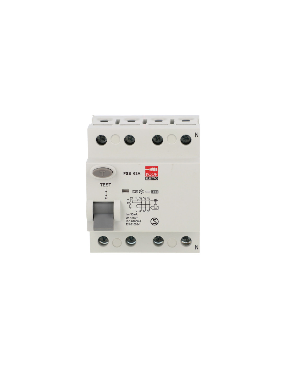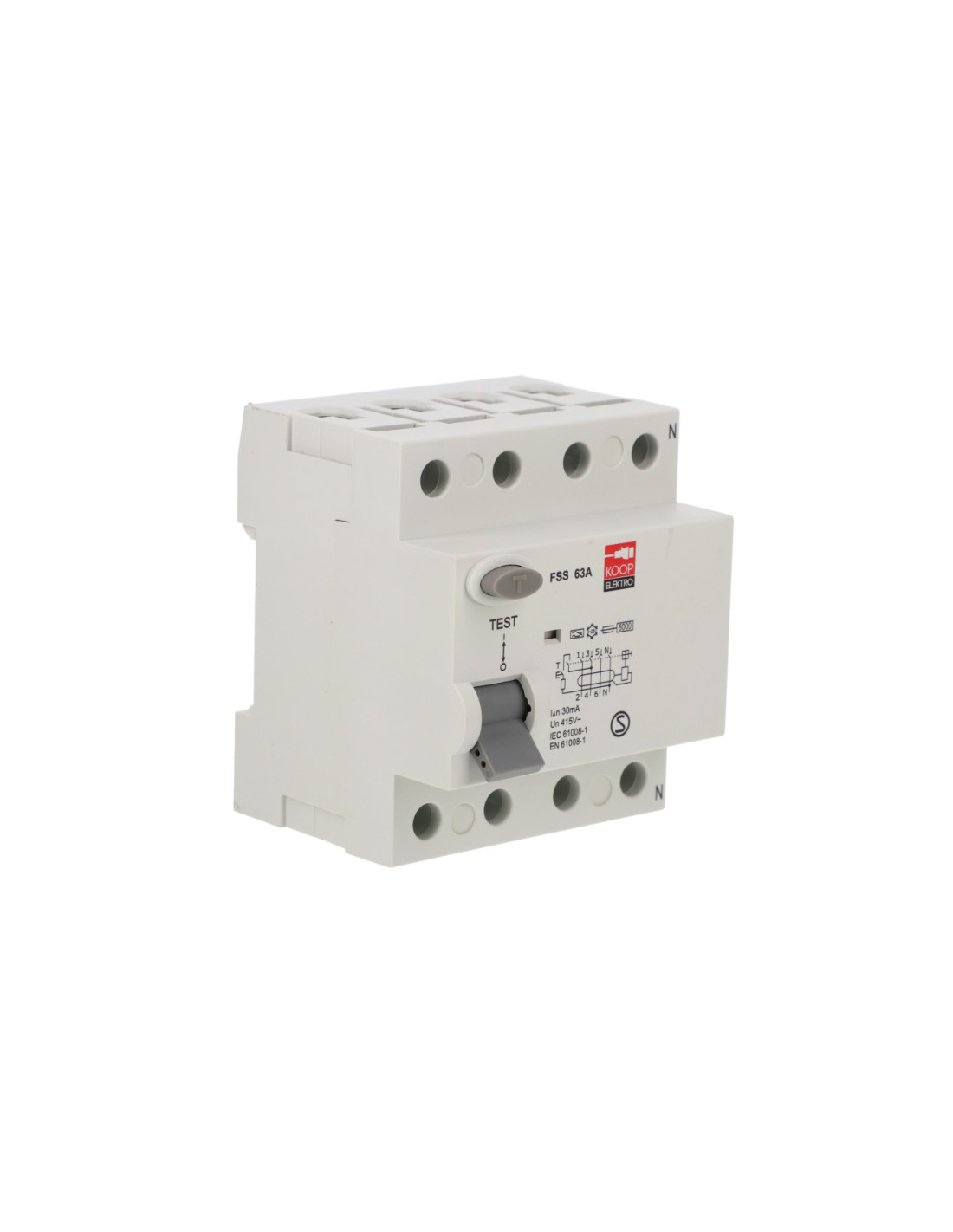 Wyłącznik różnicowoprądowy (różnicówka) KOOP Elektro FSS 4P 63A typ A to elektryczne urządzenie zabezpieczające, które rozłącza obwód po wykryciu, że prąd elektryczny z niego wypływający nie jest równy prądowi wpływającemu.