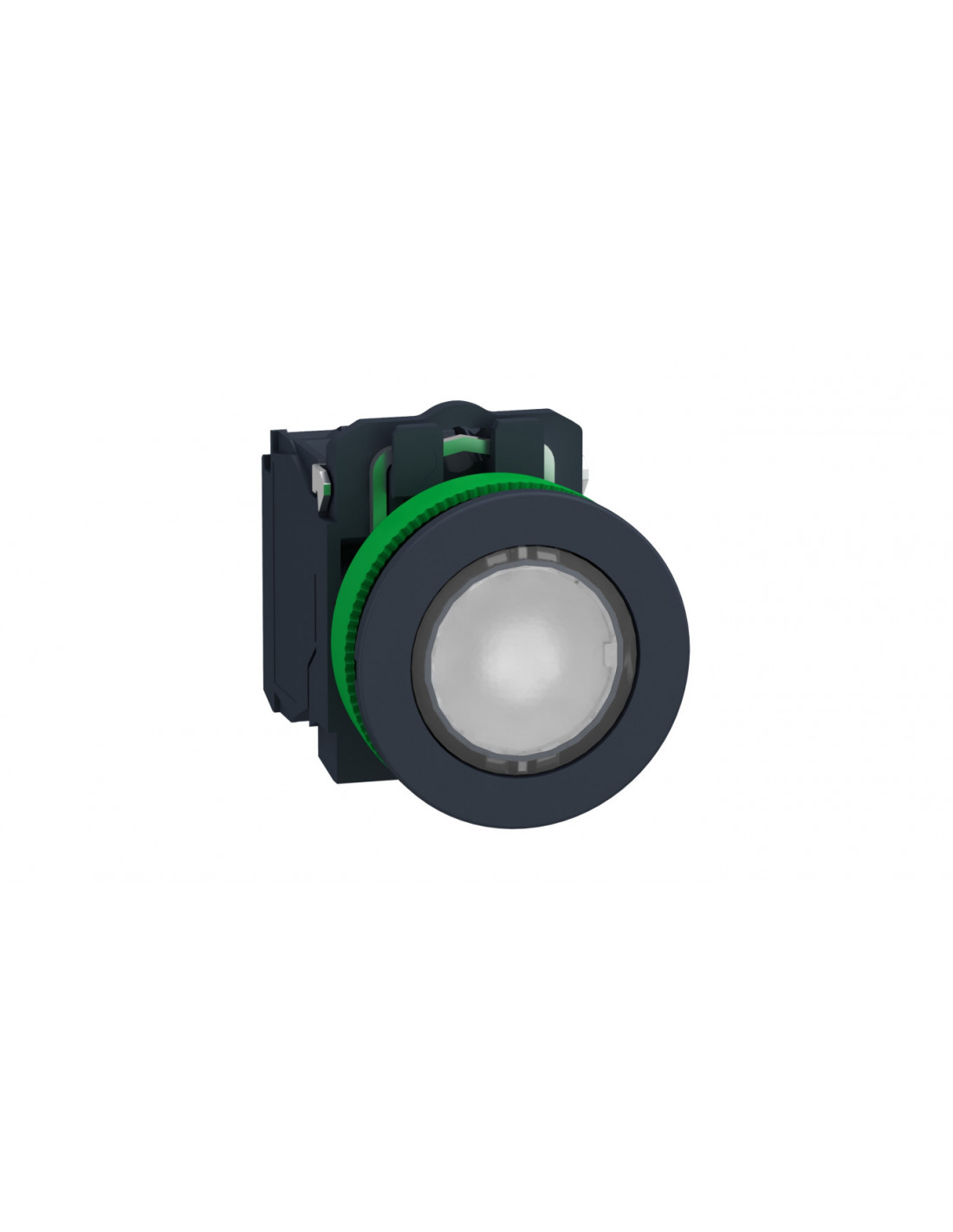Ten podświetlany przycisk do montażu płaskiego jest częścią serii Harmony XB5 z tworzywa sztucznego i stanowi kompletny produkt. Ten podświetlany przycisk do montażu płaskiego jest częścią serii Harmony XB5 z tworzywa sztucznego i stanowi kompletny produkt Jego średnica montażowa wynosi 30. 5 mm. Znamionowe napięcie zasilania wynosi 230 V do 240 V AC. Dostępna jest opcja znakowania niestandardowego za pomocą narzędzia do personalizacji dostępnego na stronie internetowej Schneider Electric. Ulepszona ergonomia i estetyka dzięki konstrukcji do montażu płaskiego. Posiada właściwości antybakteryjne. Ma gładką soczewkę, a źródłem światła jest zintegrowana dioda LED. Typ styku to 1NO i 1NC wolno działający, a terminal przyłączeniowy to zacisk śrubowy. Mechanizm napędowy jest wyposażony w samoczynny powrót. Główka ma kształt okrągły i jest biała. Maskownica i kołnierz mocujący są plastikowe. Masa tego przycisku wynosi 52 gramy, wysokość 42 mm, a szerokość 36,6 mm. Prostota instalacji, elastyczność i wytrzymałość sprawiają, że nadaje się on do większości segmentów i zastosowań przemysłowych. IP66, 67, 69 i 69K, typ 13 i 4X, IK03, zapewniają ochronę przed ciałami stałymi, pyłem, wodą i wstrząsami.
