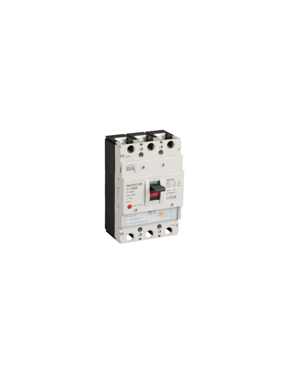 Wyłącznik kompaktowy MCCB KMCCB-RT-250A 3 bieguny 36kA(380/415V AC) 50kA(220/230V AC) IP20 37284