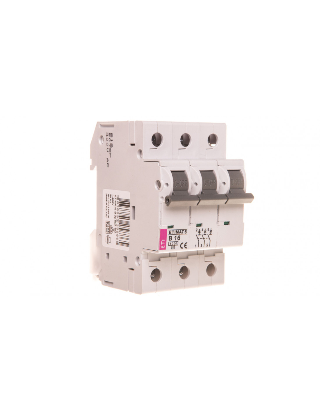 Dany wyłącznik nadprądowy pochodzi z nowoczesnej serii ETIMAT. Jego charakterystyka wyzwalania została określona literą B. Częstotliwość przy jakiej pracuje to urządzenie wynosi 50 Hz. Wyłącznik nie posiada jednocześnie rozłączanego bieguna N. Jego głębokość wbudowana wynosi 42,5 mm. Klasa ograniczenia energii została określona na 3. Wyłącznik jest 3-biegunowy oraz posiada trzy moduły. Napięcie znamionowe 2 osiąga 400 V, natomiast prąd znamionowy jest równy 16 A. IP20 to stopień ochrony, którym się cechuje. Wyłącznik będzie chroniony przed działaniem ciał obcych o średnicy 12,5 mm, jednak nie będzie chroniony przed szkodliwym działaniem warunków atmosferycznych, dlatego producent zaleca, aby wykorzystywać urządzenie w zadaszonych pomieszczeniach. Znamionowa zwarciowa zdolność łączeniowa zgodnie z EN 60898 wynosi 6 kA. Istnieje możliwość na dodatkowe wyposażenie wyłącznika. ETI-POLAM to nowoczesne przedsiębiorstwo, które może pochwalić się wieloma sukcesami. Firma posiada europejskie certyfikaty jakości, m.in.: BBJ, VDE, NEMKO, FIMKO, DEMKO, a produkcja spełnia wymogi ISO 9001 i ISO 14000.