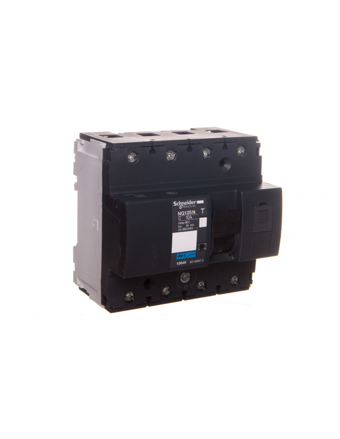 Wyłącznik nadprądowy, NG125N, 4-biegunowy, 10A, ch-ka C. aplikacja wyłącznika: rozdział - rodzina produktów: NG125 - Zakres: Acti 9 - typ produktu: wyłącznik miniaturowy - opis skrócony: NG125N - rodzaj sieci: AC, DC - technologia wyzwalacza: termomagnetyczny - zdolność wyłączania: 10 kA Icu zgodnie z EN/IEC 60947-2 - 500 V AC 50/60 Hz, 20 kA Icu zgodnie z EN/IEC 60947-2 -