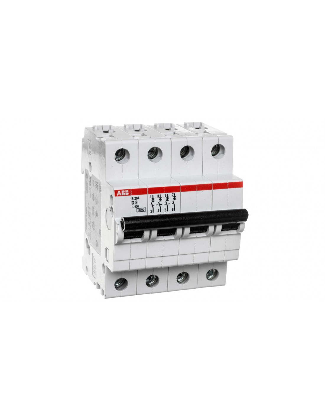 Jednym z najwyższej klasy produktów marki ABB są wyłączniki nadprądowe, których powyższa wersja składa się z czterech biegunów. Urządzenie to można wbudować na głębokość liczącą 68 mm. Szerokość artykułu określa liczba czterech modułów, w jakie wyposażono aparaturę. Produkt nie posiada jednocześnie rozłączanego bieguna N. Charakteryzuje się 3. klasą oszczędzania energii, 2. stopniem zanieczyszczenia oraz 3. kategorią przepięcia. Produkt ten można doposażyć na życzenie nabywcy. Znamionowa zwarciowa zdolność łączeniowa aparatury wynosi w tym przypadku 6 kA. Znamionowy prąd pracy jest równy 8 A. Urządzenie sprawnie i bezpiecznie działa przy znamionowym zmiennym napięciu sterowania, którego wartość sięga 400 V. Urządzenia dostępne w szerokiej ofercie firmy ABB są poddawane szczegółowym testom kontrolnym w końcowej fazie produkcji. Wysoka jakość, efektywność i bezpieczeństwo pracy artykułów są zatem potwierdzane przed sprzedażą.