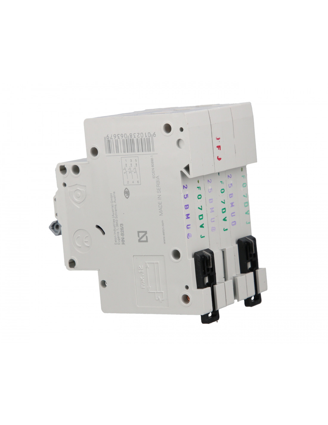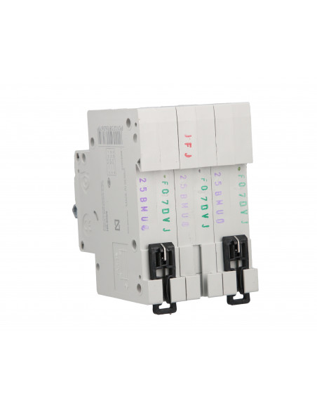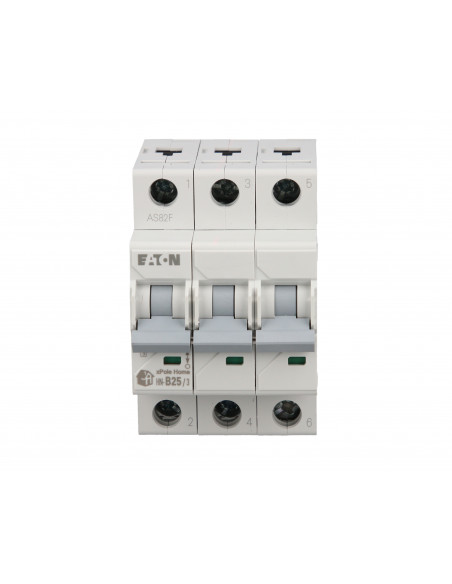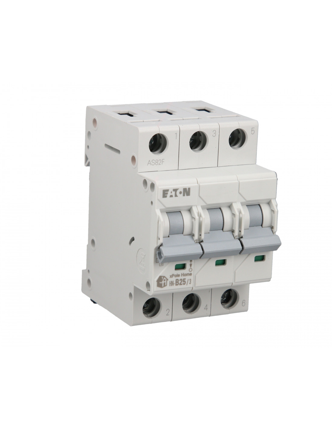 Wyłącznik nadprądowy 3P B 25A 6kA AC xPole Home HN-B25/3 194883 Główne cechy produktu Model 194883 posiada charakterystykę czasową B (tzw. szybką) oraz prąd znamionowy 25A. Zdolność zwarciowa to 6kA. Praca z napięciem 230VAC i 48VDC Podwójne zaciski z obu stron aparatu — windowe pod przewód i szynowe pod szyny łączeniowe Spełnia wymagania koordynacji izolacji, odległości pomiędzy stykami 3>4 mm w celu zapewnienia bezpiecznej izolacji Montaż na szynie DIN TH 35 Zasilanie z obu stron aparatu Seria produktów zapewniających ochronę i bezpieczeństwo w nowoczesnych instalacjach Wyłącznik nadmiarowo prądowy EATON służy do zabezpieczenia instalacji elektrycznej przed skutkami przeciążeń, czyli przepływowi prądu o większym natężeniu i wartości niż dopuszczalne oraz przed skutkami zwarć. W momencie długotrwałego przeciążania obwodu lub zwarcia, wyłącznik nadprądowy wyzwala – czyli automatycznie wyłącza chroniony obwód. OBWODY GNIAZDKOWE | OBWODY OŚWIETLENIOWE | URZĄDZENIA RTV I AGD Dlaczego warto wybrać wyłącznik nadprądowy Eaton? Uproszczone wzornictwo Estetyczny design, który ułatwia intuicyjne korzystanie, a zarazem nie zakłóca estetyki wnętrza. Odporność i wytrzymałość na agresywne środowisko Możliwość zastosowania w różnych warunkach, także na zewnątrz. Kompatybilność z innymi urządzeniami Nowa aparatura modułowa EATON może być wyposażona w akcesoria: styki pomiocnicze, wyzwalacz wzrostowy, wyzwalacz podnapięciowy, aparat do ponownego załączenia, szyny łączeniowe, blokadę na kłódkę. łatwy w montażu, wygodny w użyciu Informacja o stanie urządzenia na wyciągnięcie ręki Zacisk windowy i szynowy Szara dźwignia zespolona mechanicznie ze wskaźnikiem ON/OFF Możliwość zaplombowania w pozycji ZAł. i WYł. Wskaźnik położenia styków czerwony/zielony Prosty montaż na szynie DIN Specyfikacja techniczna: Model: HN-B25/3 Wyłącznik instalacyjny typu B podstawowym zabezpieczeniem elektrycznym w instalacjach o niskich napięciach Bezpiecznik nadprądowy (potocznie: „eska” ma za zadanie chronić instalację przed. Do przeciążenia dochodzi w sytuacji, gdy przez dany element przepływa prąd elektryczny o natężeniu większym niż normalnie. Zdarza się to w przypadku podłączenia zbyt wielu urządzeń do tego samego obwodu. Wyłączniki nadprądowe EATON chronią instalację również przed zwarciami. Dochodzi do nich przy zetknięciu się dwóch przewodów ze sobą, co skutkuje przepływem bardzo dużego prądu i ryzykiem uszkodzenia urządzeń elektrycznych. Wyłączniki nadprądowe typu B używane są do zabezpieczania gniazd i obwodów oświetleniowych i są najpopularniejszym zabezpieczeniem w instalacjach elektrycznych. Zobacz video na temat wyłączników nadprądowych i poznaj pełną ofertę zabezpieczeń przed przeciążeniem elektrycznym xPole Home Seria produktów przeznaczona do nowoczesnych projektów Nowa seria produktów xPole Home, obejmująca całą gamę wyłączników nadprądowych HN, kombinowanych HNB i różnicowoprądowych HNC, została opracowana z myślą o maksymalnym bezpieczeństwie i efektywności projektowania. Serię tę cechują uproszczone wzornictwo, niezawodność i pełna zgodność z odpowiednimi normami. Ponadto urządzenia z serii xPole Home są łatwo dostępne i proste w montażu. Wyłączniki nadprądowe HN serii xPoleHome znajdują zastosowanie w instalacjach domowych, komercyjnych i przemysłowych chroniąc to co najważniejsze — użytkowników i urządzenia. Zalety serii xPole Home Nowe wyłączniki Eaton z serii xPole cechują się wysoką ergonomią wykonania, co przekłada się na optymalną temperaturę pracy oraz zwiększoną wytrzymałość elektryczną i mechaniczną. Optymalne portfolio łatwiejszy wybór Nowoczesny design Najwyższa niezawodność i bezpieczeństwo łatwy montaż Duża wytrzymałość Kolejny etap w rozwoju zabezpieczeń Urządzenie EATON AFDD+ to nie tylko udoskonalona wersja istniejących modeli. To kolejny etap rozwoju urządzeń zabezpieczających, wykorzystujący najnowsze rozwiązania i potencjał technologii cyfrowych. Zabezpieczenie przed zwarciami i przeciążeniem Zabezpieczenie ziemnozwarciowe Zabezpieczenie łukochronne Ochrona przeciwpożarowa Zabezpieczenie ziemnozwarciowe Wyłączniki nadprądowe HN + - - podstawowa - Wyłączniki różnicowoprądowe HNC - + - podstawowa + Wyłącznik kombinowany HNB + + - zwiększona + Urządzenie AFDD+ + + + rozszerzona + Najczęściej zadawane pytania Wyłącznik nadprądowy budowa i zasada działania Wyłącznik nadprądowy składa się z kilku kluczowych elementów, spośród których kluczowymi są wyzwalacz termobimetalowy zwany przeciążeniowym i wyzwalacz elektromagnetyczny zwany zwarciowym. Aparat ten chroni instalację elektryczną przed skutkami zwarć i przeciążeń oraz przed powstaniem pożaru i porażeniem prądem elektrycznym. W przypadku długotrwałego przeciążenia wyzwalacz termobimetalowy nagrzewa się i powoduje zadziałanie aparatu. W przypadku zwarcia zadziała wyzwalacz elektromagnetyczny i wygasi łuk elektryczny w komorze gaszeniowej zanim dojdzie do uszkodzenia urządzeń elektrycznych. Jaki wyłącznik B czy C Wyłączniki nadprądowe posiadają różne charakterystyki zwarciowe oznaczane literami: Z, B, C, D, K, S. Charakterystyka B stosowana jest do zabezpieczania gniazd i tradycyjnego oświetlenia czyli odbiorników rezystancyjnych. Charakterystyka C stosowana jest do zabezpieczania oświetlenia LED, płyt indukcyjnych, siłowników do bram, automatyki domowej czyli urządzeń o charakterze pojemnościowym. Kiedy zadziała wyłącznik nadprądowy Wyłącznik nadprądowy zadziała gdy przepływa przez niego długotrwale prąd o wyższym natężeniu niż jego prąd znamionowy np. gdy przez wyłącznik o prądzie 10A przepływa prąd o natężeniu większym od 11,3A. Innym typowym przypadkiem zadziałania jest zwarcie czyli nagły przepł