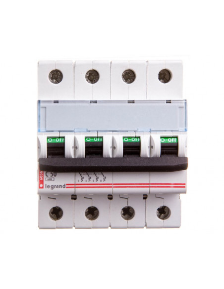 LEGRAND to marka z wieloletnim stażem na światowym rynku produkcji osprzętu elektroinstalacyjnego. Firma działa na światowym rynku od 1860 roku, a w dzisiejszych czasach posiada swoje fabryki na najbardziej kluczowych rynkach świata: we Francji, Hiszpanii, Włoszech, Polsce, USA, Brazylii, Korei Południowej i Australii. Koncern ciągle pracuje nad nowymi rozwiązaniami, wykorzystuje nowoczesne technologie i najlepsze jakościowo materiały. Dany wyłącznik nadprądowy posiada 4 bieguny. Głębokość wbudowana wynosi 44 mm. Charakterystyka wyzwalania została określona klasą C. Wyłącznik nie posiada jednocześnie rozłączalnego bieguna N. Prąd znamionowy w tym urządzeniu może dojść do 50 A. Częstotliwość przy jakiej pracuje dany wyłącznik wynosi 50 Hz. Stopień ochrony określony przez producenta to IP2X. Aparat posiada 4 moduły. Znamionowa zwarciowa zdolność łączeniowa zgodnie z EN 60898 wynosi 6 kA. Istnieje możliwość dodatkowego wyposażenia urządzenia.