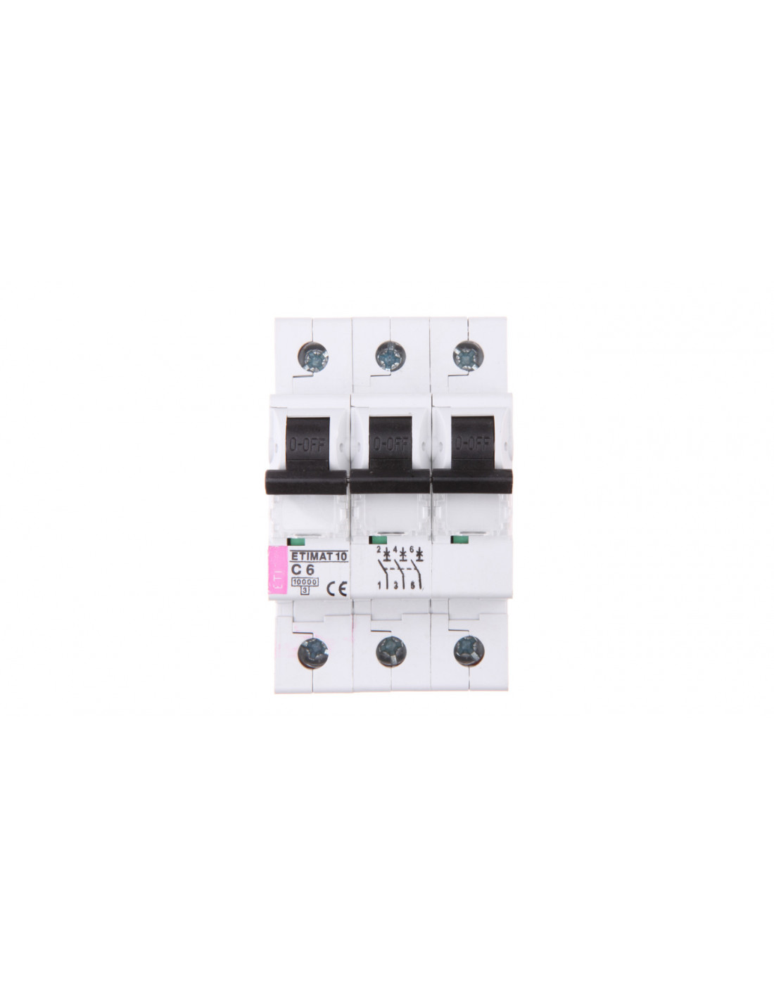 Powyższy wyłącznik nadprądowy posiada 3 bieguny oraz 3 moduły. Charakterystyka wyzwalania została określona literą C. Częstotliwość przy jakiej pracuje wynosi 50 Hz. Głębokość wbudowana urządzenia wynosi 42,5 mm. Klasa ograniczenia energii została określona na 3. Napięcie znamionowe 1 wynosi 230 V, natomiast napięcie znamionowe 2 - 400 V. Prąd znamionowy jest równy 6 A. Znamionowa zwarciowa zdolność łączeniowa zgodnie z EN 60898 wynosi 10 kA, natomiast znamionowa zwarciowa zdolność łączeniowa zgodnie z IEC 60947-2 wynosi 15 kA. Wyłącznik nie posiada jednocześnie rozłączanego bieguna N. Stopień ochrony nadany przez producenta to IP20, który świadczy o odporności wyłącznika na ciała obce o średnicy 12,5 mm. Urządzenie nie będzie jednak chronione przed działaniem wody i wilgoci, dlatego nie powinien być wykorzystywane na zewnątrz. Wyłącznik można dodatkowo wyposażyć. Wyprodukowała go znana marka ETI-Polam, która jest jednym z wiodących producentów wyłączników nadprądowych i ochronnych różnicowoprądowych, bezpieczników topikowych. Aparatura ETI jest bezpieczna w użytkowaniu, a wytwarzana jest z najlepszych gatunkowo materiałów.