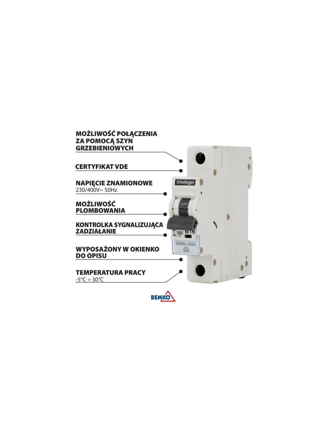 Wyłącznik nadprądowy 6KA 1P B 25A SCHELINGER A02-G8-1P-B25
