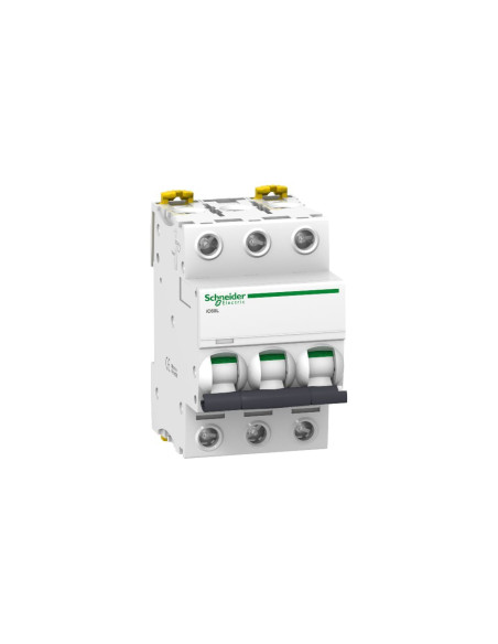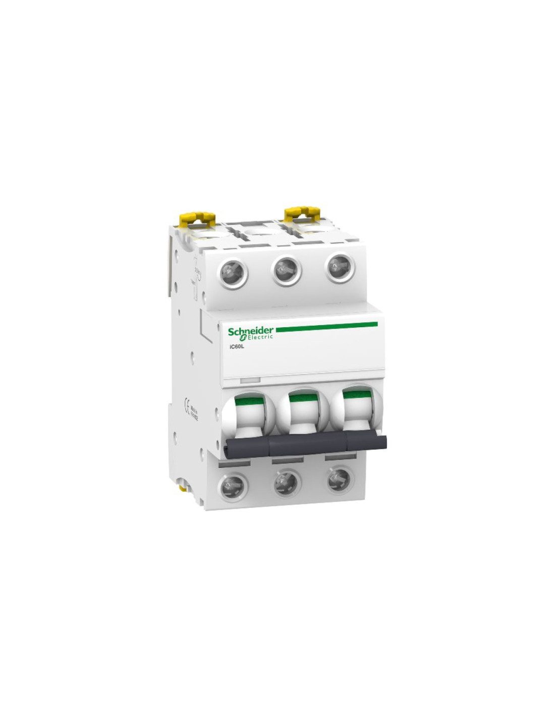 Wyłącznik nadprądowy iC60L-B1-3 B 1A 3-biegunowy ,o numerze A9F93301. Możliwość bezpośredniego podłączenia dwóch przewodów o różnych przekrojach. Opt yczny wskaźnik Visi-Trip wyzwolenia elektrycznego, biało-czerwony. Możliwość demontażu pojedynczego aparatu bez potrzeby zdejmowania szyny łączeniowej. Zdjemowanie z szyny DIN bez użycia narzędzi.