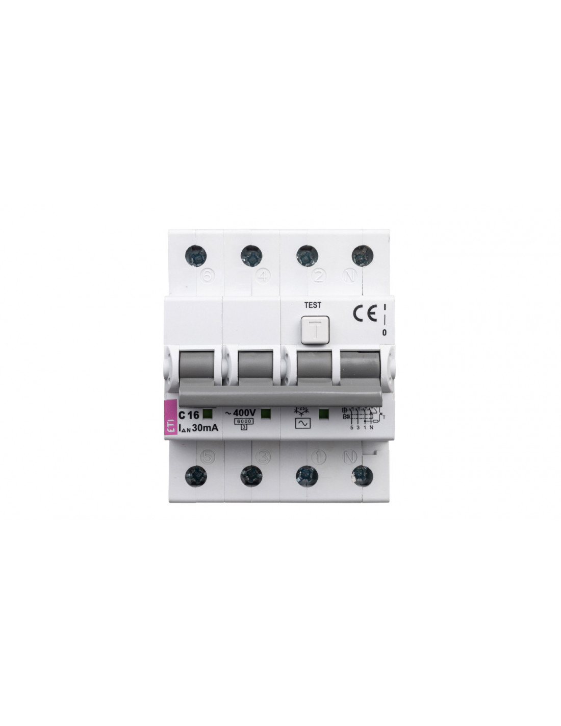Produkt posiada 4 bieguny, a jego szerokość wyrażona liczbą modułów jest równa 4. Wyłącznik różnicowo - prądowy ma stopień ochrony IP20, dlatego w miejscu jego pracy nie powinno być wilgoci ani pyłu.