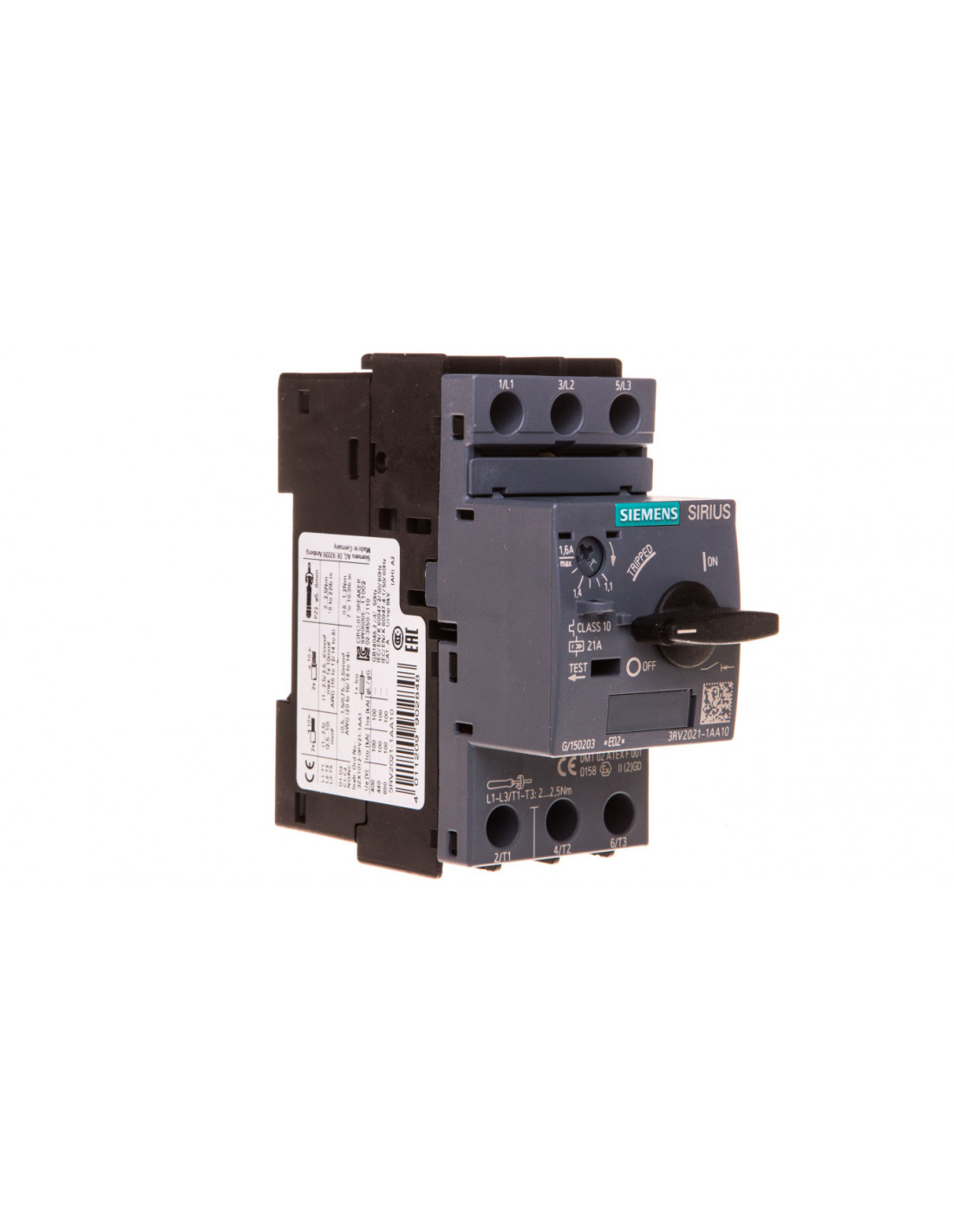 Wyłącznik silnikowy 3RV2021-1AA10 pochodzi z bogatego asortymentu marki Siemens, która znana jest na całym świecie jako producent innowacyjnych technologicznie systemów elektryfikacji, digitalizacji oraz automatyzacji wykorzystywanych we wszystkich dziedzinach życia. Urządzenie posiada termomagnetyczny wyzwalacz, który służy zabepieczeniu przed przeciążeniem i przepięcziem. Stosowany jest w celu zabezpieczenia przed zakłóceniem pracy w silnikach, transformatorach, wyłącznikach instalacyjnych, kombinacjach rozruchowych, aparatach monitorujących bezpieczniki oraz jako ochrona w sieciach IT. Wyłącznik silnikowy 3RV2021-1AA10 ze względu na stopień ochrony IP20 powinien być motnowany w pomieszczeniach suchych, niezapylonych, które nie są narażone na działanie niebezpiecznych substancji. Znamionowa zwarciową zdolnością łączeniową urządzenia wynosi 50 kA. Wyłącznik silnikowy pracuje z prądem 1,6 A, natomiast zakres nastawy jego wyzwalacza przeciążeniowego waha się między 1,1 A a 1,6 A. Urządzenie mocowane jest na stałe, a do obwodu głównego przyłącza się je w sposób śrubowy. Profesjonalnie wykonany wyłącznik posiada certyfikaty potwierdzające jakość i bezpieczeństwo jego pracy.