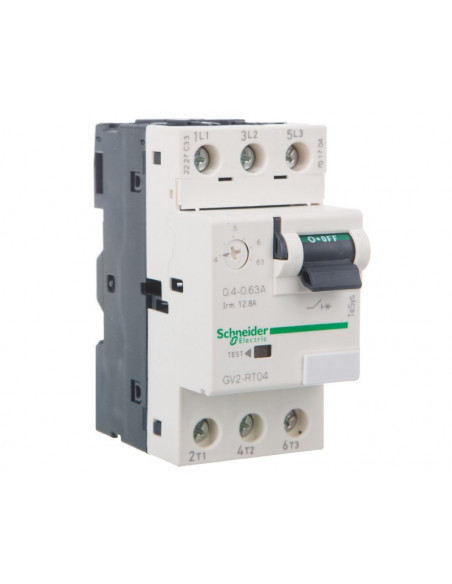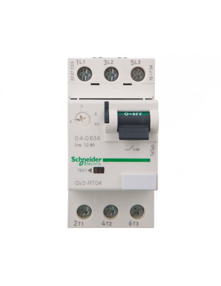 Wyłącznik silnikowy z dźwignią I= 0,4...0,63A- zaciski śrubowe. Zakres: TeSys - opis skrócony: GV2RT - typ produktu: wyłącznik - aplikacja wyłącznika: zabezpieczenie transformatora, zabzpieczenie silnika - rodzaj sieci: AC - Kategoria użytkowania: AC-3 zgodnie z IEC 60947-4-1, kategoria A zgodnie z IEC 60947-2 - zdolność wyłączania: Icu = 100 kA przy 220/230 V AC 50/60 Hz zgodnie z IEC 60947-2, Icu = 100 kA przy 400/415 V AC 50/60 Hz zgodnie z IEC 60947-2, Icu = 100 kA przy 440 V AC 50/60 Hz zgodnie z IEC 60947-2, Icu = 100 kA przy 500 V AC 50/60 Hz zgodnie z IEC 60947-2, Icu = 100 kA przy 690 V AC 50/60 Hz zgodnie z IEC 60947-2 - prąd wyzwalania magnetycznego: 13 A. Zalety: Kompletna ochrona skoncentrowana w jednym produkcie Kompaktowe i proste w wyborze, wyłączniki silnikowe TeSys GV2mają jedynie 45mm szerokości i są kwalifikowane ze względu na parametry i funkcje: rodzaj sterowania, zdolność wyłączania, ochrona silnika i akcesoria.... Zastosowanie: - Przemysł, infrastruktura, budownictwo, itd.: Sterowanie i zabezpieczenie silników, zgodnie z normami IEC 947-2 i IEC 947-4-1., Łatwe do dołączenia do dowolnej konfiguracji poprzez montaż śrubowy lub zaciskowy do szyn montażowych..