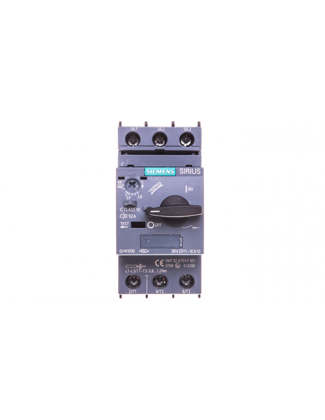 Wyłącznik silnikowy 3RV2011-1EA10 to jedna z propozycji katalogowych renomowanej marki Siemens, która jest pionierem na rynku w zakresie nowoczesnych rozwiązań technologicznych, znajdujących zastosowanie w każdej dziedzinie działalności człowieka. Należy do serii SIRIUS i jest kompaktowym urządzeniem służącym do łączenia, ochrony i rozdzielania obwodów prądowych z obciążeniem. Co więcej, 3-biegunowy wyłącznik silnikowy zabezpiecza silniki przed zniszczeniem w czasie przeciążenia, zwarcia lub zablokowanego rozruchu. Ze względu na stopień ochrony IP20, urządzenie powinno być montowane w pomieszczeniach, które są suche, niezapylone i nie unoszą się w nich niebezpieczne substancje. Wyłącznik silnikowy 3RV2011-1EA10 został wyposażony w termiczny wyzwalacz o zakresie nastawy od 2,8 A do 4 A. Przystosowano go do pracy z silnikami o znamionowej mocy do 1,5 kW przy 400 V AC. Co więcej, urządzenie jest czułe na zanik fazy, a do obwodu głównego mocuje się je za pomocą zacisków śrubowych. Ten sposób montażu należy do niezwykle prostych i szybkich. obsługa wyłącznika silnikowego marki Siemens jest niezwykle prosta, ponadto urządzenie cechuje się efektywnością na najwyższym poziomie.