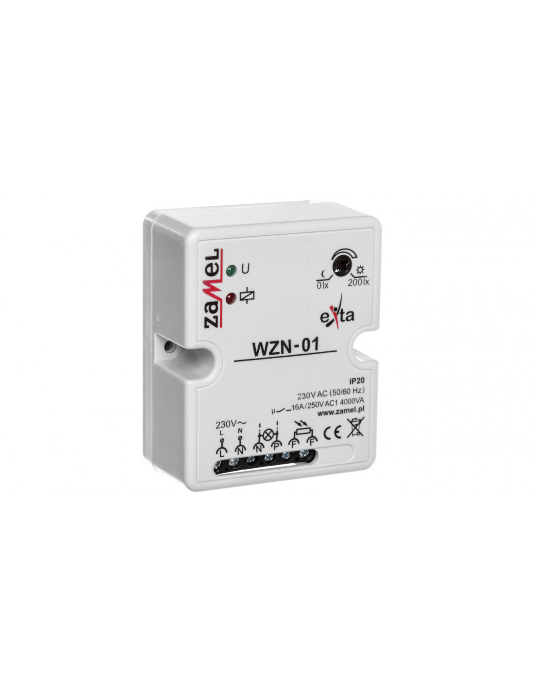 Wyłącznik zmierzchowy marki Zamel to urządzenie elektroniczne, które charakteryzuje się II klasą dokładności. Artykuł wykonano z wysokogatunkowego tworzywa sztucznego, czyli duroplastu. Jest dostępny w kolorze białym o odcieniu 941571. Powierzchnia produktu jest matowa. Samo urządzenie nie jest przystosowane do pracy na zewnątrz ze względu na niski stopień ochrony (IP20) przed działaniem wilgoci i pyłu. Produkt posiada jednak czujnik, który charakteryzuje się wyższą odpornością, oznaczoną symbolem IP65. Opóźnienie wyłączania może sięgać 30 sekund. Artykuł prawidłowo działa przy zmiennym napięciu sterowania, którego wartość wynosi 230 V przy częstotliwości od 50 Hz do 60 Hz. Znamionowe napięcie czujnika jest równe 2 V. Znamionowy prąd załączania sięga 16 A. Regulacja jasności jest możliwa do 200 lx. Maksymalna zdolność łączeniowa dla żarówek sięga 2000 W. Zdolność łączeniowa dla świetlówek wynosi 1000 VA, dla świetlówek z kompensacją równoległą sięga 750 VA. Producent takiego sprzętu - firma Zamel - pracuje na polskimi zagranicznym rynku od około 20 lat. Dzięki sumiennej realizacji wyznaczonych sobie celów i wierności własnym wartościom firma jest dziś uznawana za lidera na rynku elektronicznym Europy Środkowo-Wschodniej.