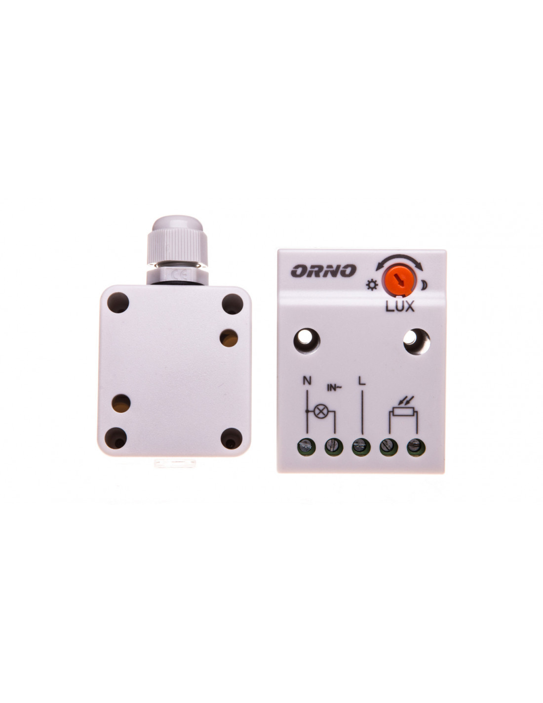 Powyższy czujnik zmierzchowy został wyprodukowany przez znaną polską markę ORNO. Czujnik posiada zewnętrzną sondę, która jest umiejscowiona w puszce. Częstotliwość znamionowa przy jakiej pracuje to urządzenie dochodzi do 50 Hz. Maksymalna zdolność łączeniowa dla żarówek to 2300 W. Napięcie znamionowe 1 oraz 2 sięga 230 V. Zakres regulacji jasności sięga od 2 do 100 lx. Znamionowy prąd załączania wynosi 15 A. Głębokość wbudowana urządzenia wynosi 29,3 mm. Czujnik należy zamontować naściennie. Posiada on stopień ochrony IP20, który mówi o braku ochrony na czynniki zewnętrzne. Całe urządzenie posiada stopień ochrony IP65, który świadczy o wysokiej ochronie na wodę, kurze, pyły itp. Czujnik posiada 2,5 modułu, który świadczy o szerokości urządzenia. ORNO, to polska marka, która działa już od 25 lat na naszym rynku. Firma stara się, aby każdy użytkownik był zadowolony z zakupionego sprzętu, dlatego koncentruje się na każdym szczególe przy konstrukcji urządzeń. Główna siedziba firmy znajduje się w Mikołowie.