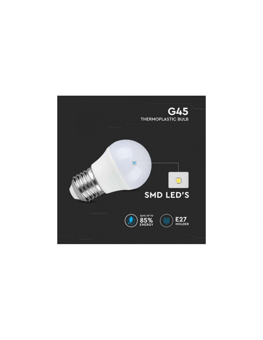 Żarówka LED 6,5W E27 G45 6400K 600lm Dioda SAMSUNG 180st. 21868