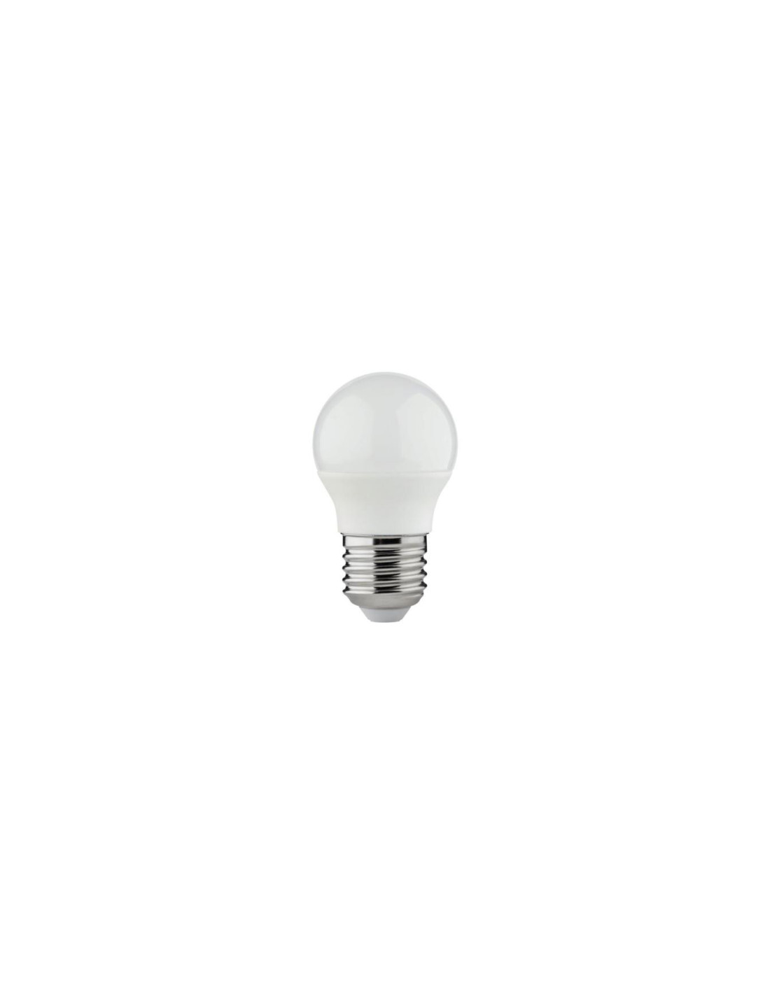 Źródło światła LED, Głębokość [mm]: 45, Szerokość [mm]: 45, Średnica [mm]: 45, Wysokość [mm]: 77, Typ: ZrodlaLED, Barwa światła: ciepłobiała, Częstotliwość znamionowa [Hz]: 50, Deklaracja równoważności dotycząca mocy [W]: 40, EEI źródła światła: E, Ilość cykli wł/wył: ≥50000, Jednolitość barw [SDCM]: 6, Kolor: biały, Materiał: tworzywo sztuczne, Materiał klosza: tworzywo sztuczne, Moc znamionowa [W]: 3.4, Możliwość współpracy ze ściemniaczem: nie, Napięcie znamionowe [V]: 220-240 AC, Prąd znamionowy lampy [mA]: 30, Zużycie energii w trybie włączenia [kWh]/1000h: 4, Rodzaj diody: LED SMD, Skuteczność świetlna lampy [lm/W]: 138, Temperatura barwowa [K]: 2700, Trzonek: E27, Współczynnik oddawania barw Ra: 90, Zawartość rtęci: nie, Znamionowa trwałość lampy [h]: 25000, Znamionowy kąt promieniowania [°]: 150, Całkowity znamionowy strumień świetlny [lm]: 470, Źródło światła: G45, Kształt zarówki: kulka.