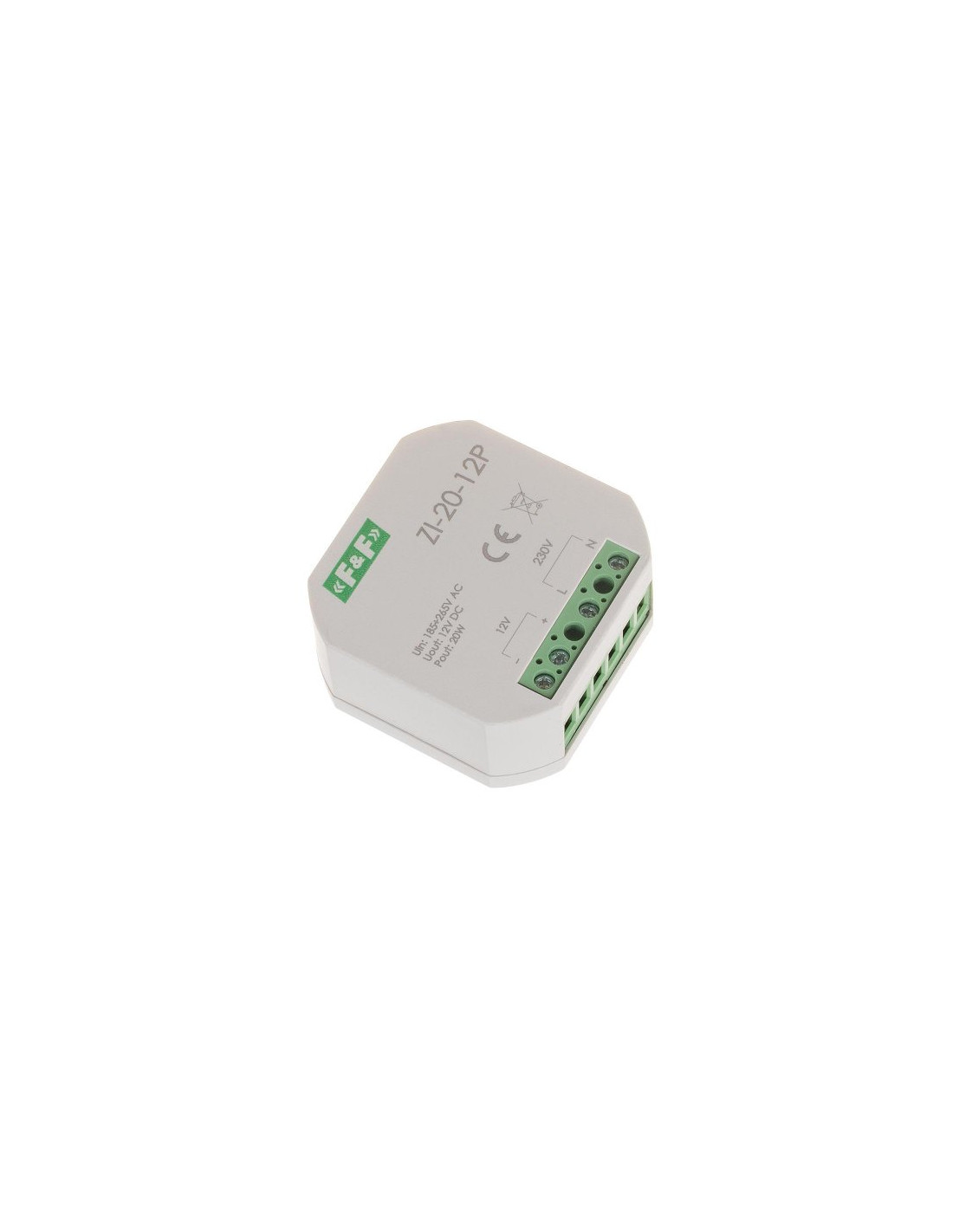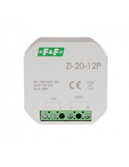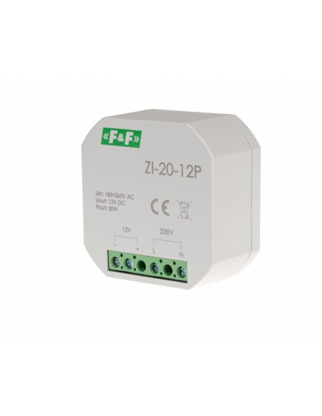 Zasilacz impulsowy do puszki 180-264V AC, wyj. 12V DC 1,6A 20W ZI-20-12P