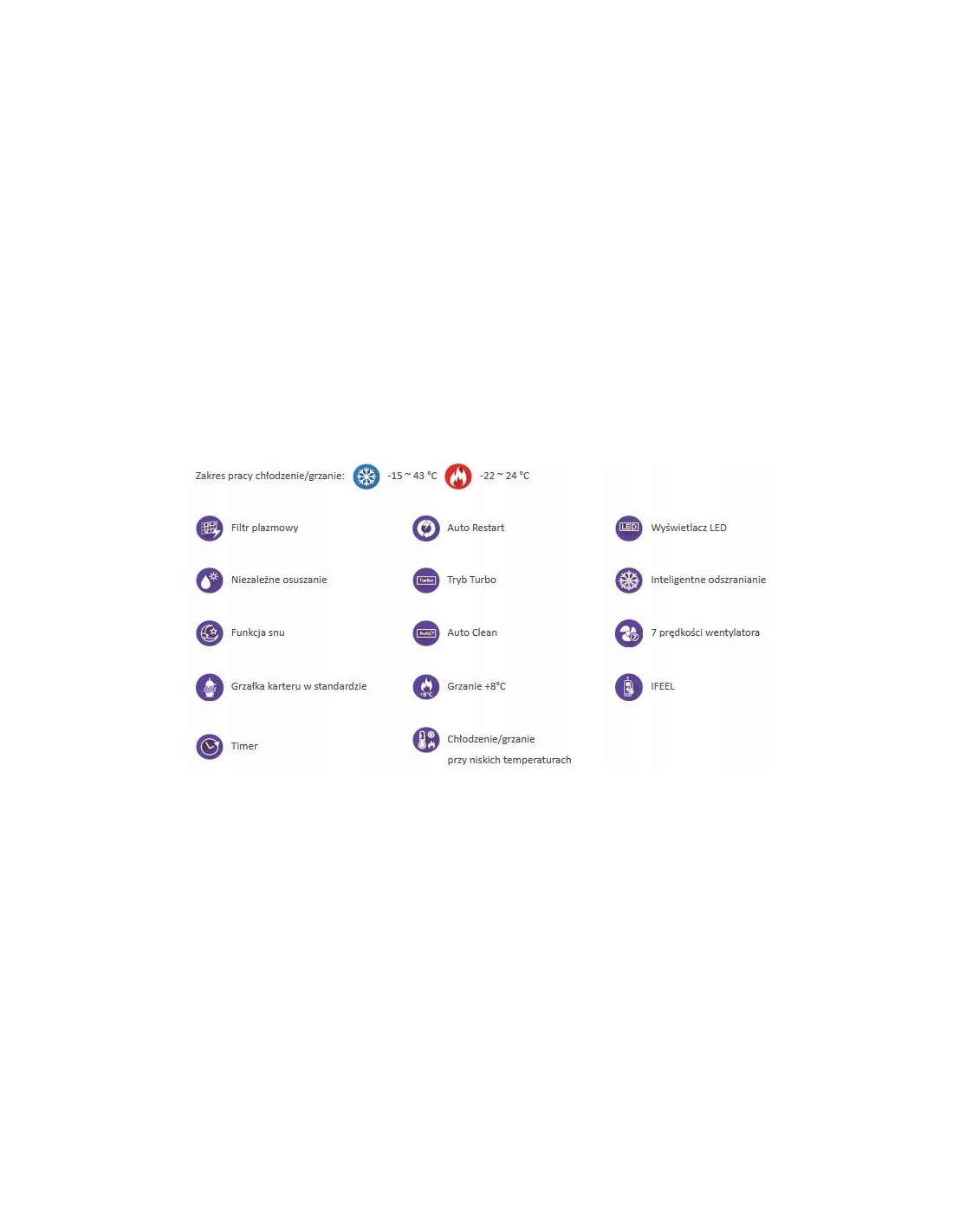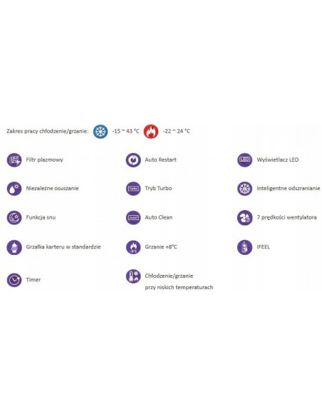 Inteligentne odszranianie Proces odszraniania wymiennika klimatyzatora następuje tylko w momencie gdy jest to niezbędne, dzięki czemu zwiększona zostaje wydajność grzewcza urządzenia.