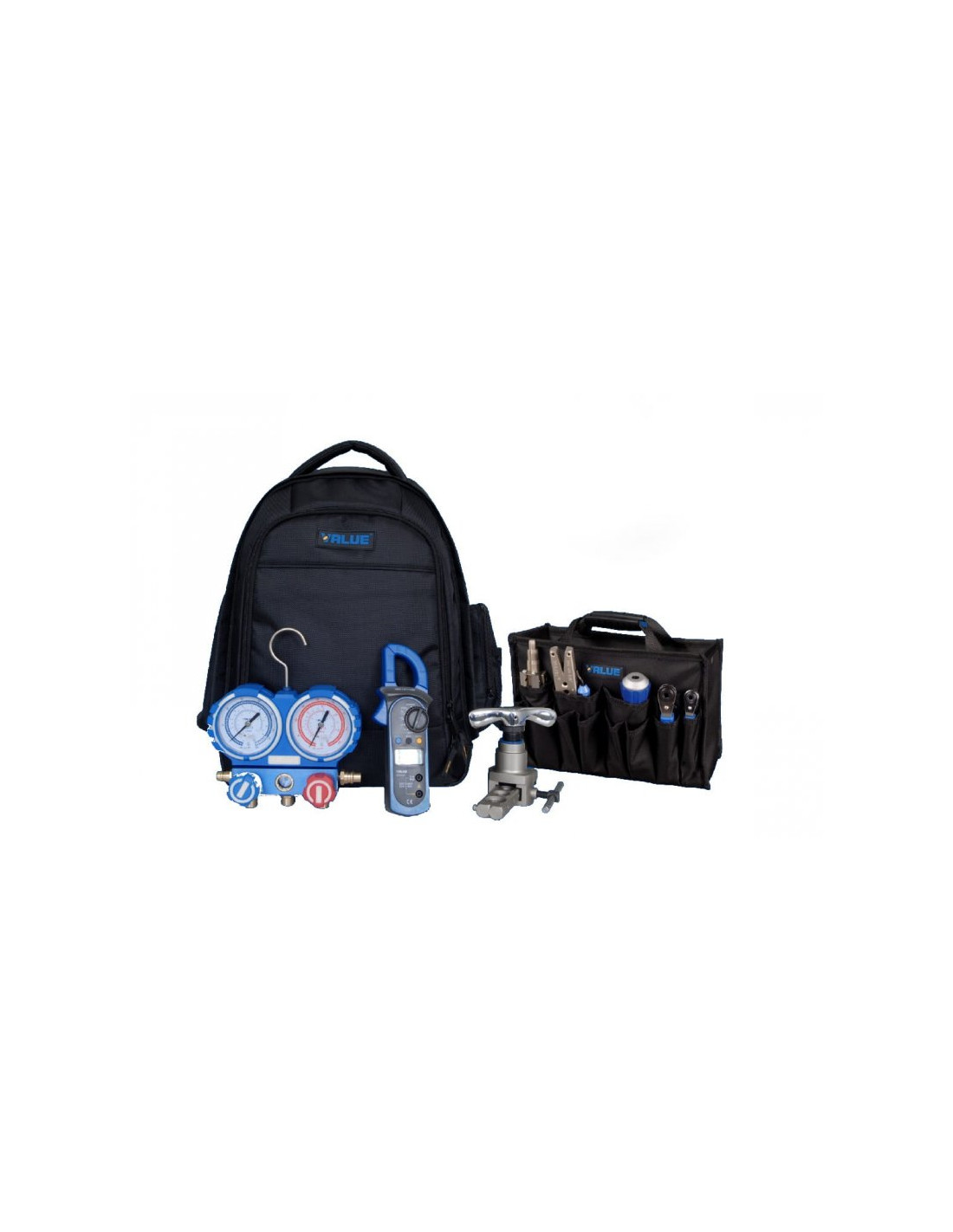 Zestaw narzędzi serwisowych do chłodnictwa i klimatyzacji w praktycznym plecaku.