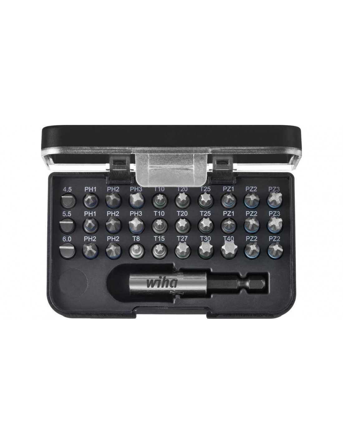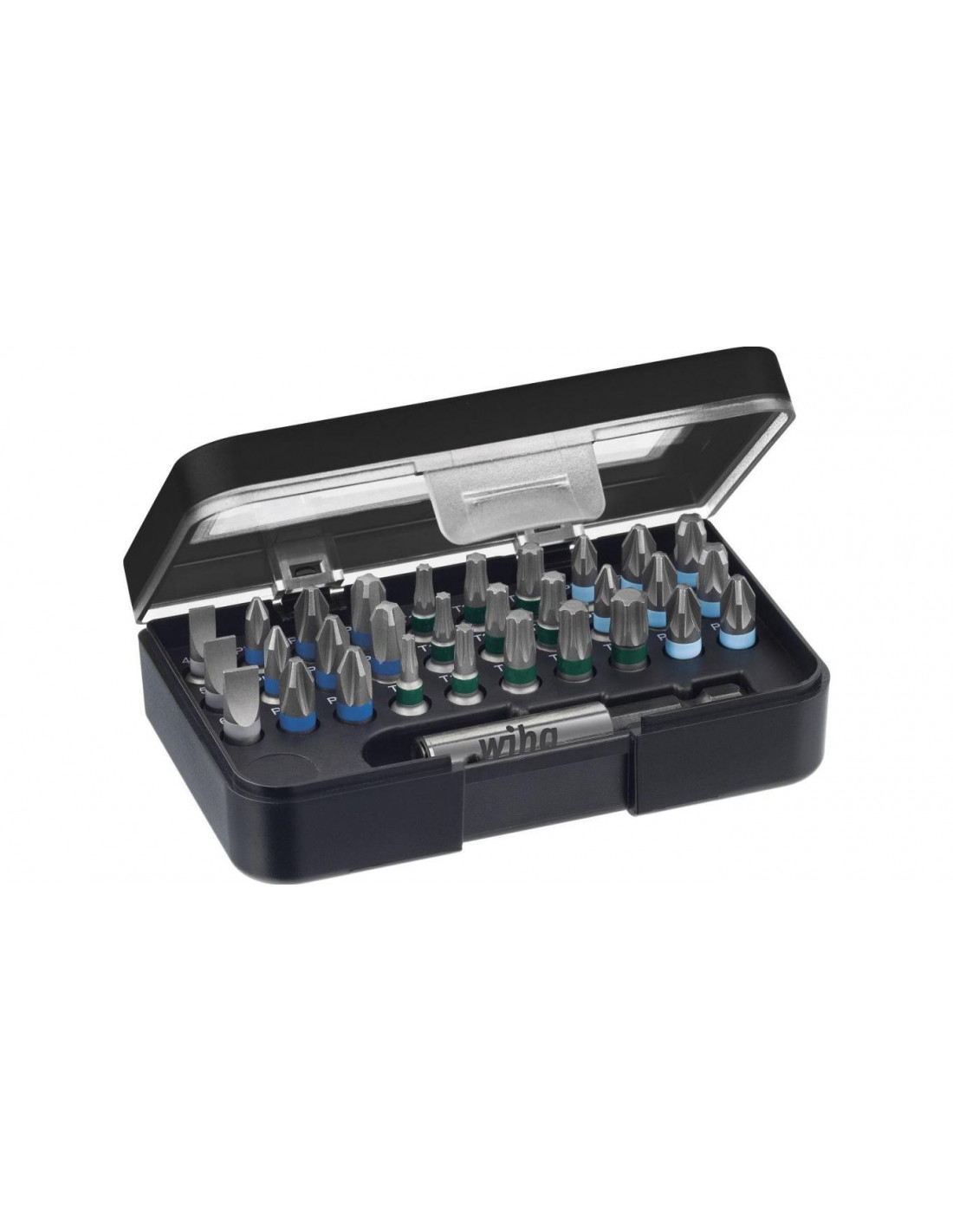 Zestaw 31 bitów Wiha Professional z uniwersalnym magnetycznym uchwytem na bity. Zestaw najbardziej popularnych bitów dla każdego specjalisty. W skład zestawu wchodzą: płaskie 1x4,5 1x5,5 1x6 PH 2xPH1 3xPH2 1xPH3 PZ 2xPZ1 3xPZ2 1xPZ3 Torx 2xT10 2xT15 3xT20 2xT25 1xT30 1xT40 Imbusowe 1x3 1x4 1x5 1x6 Oraz uniwersalny magnetyczny uchwyt do bitów. Dzięki przeźroczystej obudowie w szybki sposób odnajdziemy prawidłową końcówkę. Dodatkowy klips z drugiej strony opakowania pozwala nam na szybkie zaczepienie zestawu do spodni czy koszuli