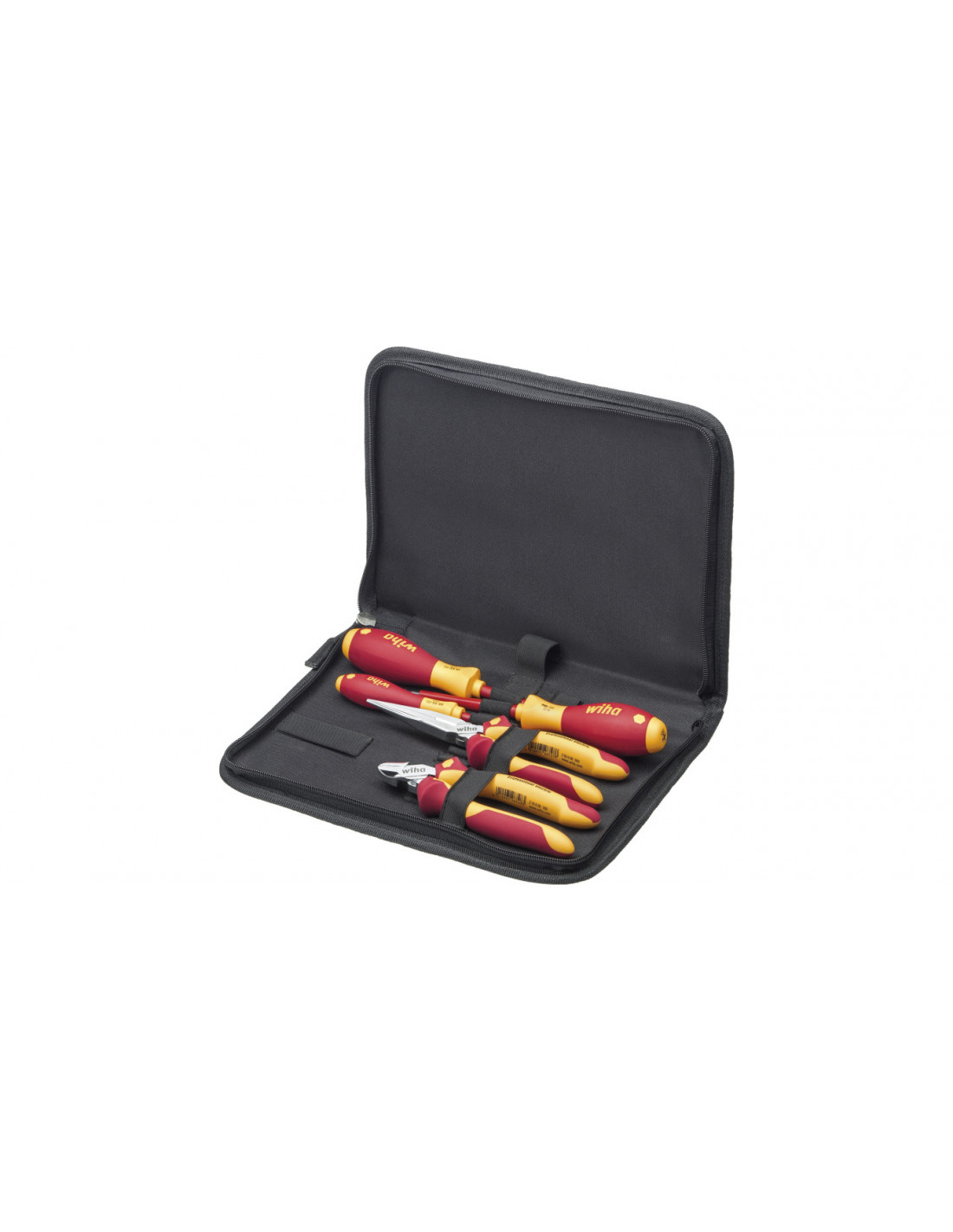 Mały, podstawowy zestaw szczypiec i wkrętaków dla elektryków. Narzędzia w izolacji VDE(1000V) umożliwiające zastosowanie w obszarze pod napięciem do 1000V AC.