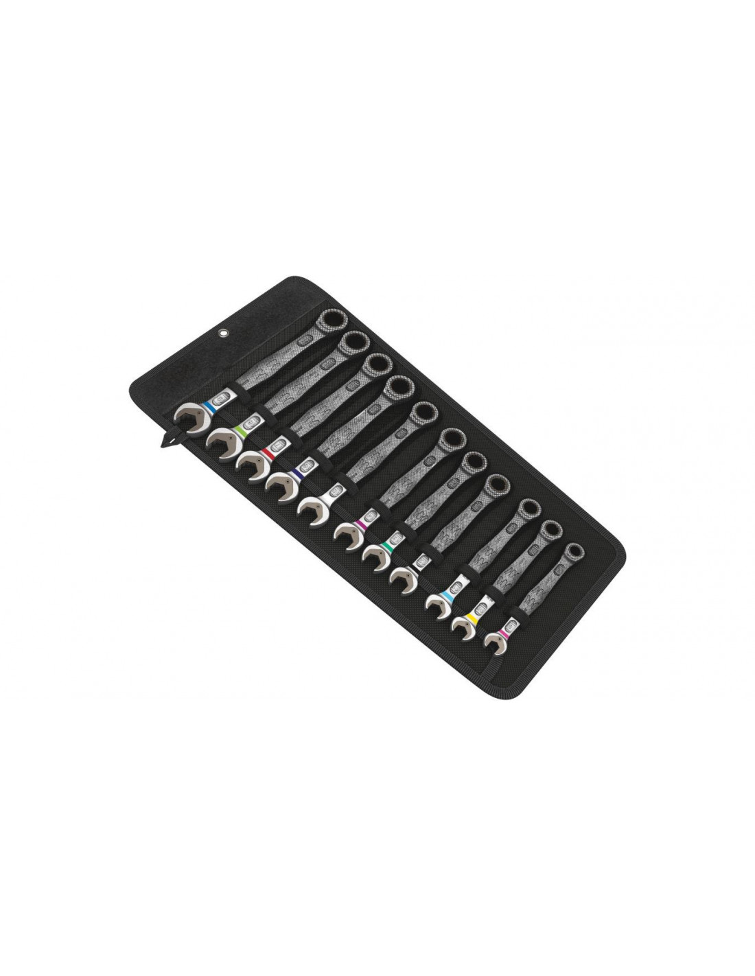 Zestaw wysokiej jakości kluczy płasko-oczkowych z grzechotką: wszystko, co powinien zapewnić klucz. I jeszcze więcej. Szybciej, lepiej, bezpieczniej. Tak właśnie działa Joker. Nowa generacja kluczy płasko-oczkowych z grzechotką. 11-częściowy zestaw w wytrzymałym etui. Do śrub i nakrętek z łbem sześciokątnym. Funkcja przytrzymywania z metalową płytką zmniejszającą ryzyko zgubienia śruby lub nakrętki. Bardzo twarde ząbki wymiennej płytki zabezpieczają śruby i nakrętki oraz zmniejszają ryzyko ześlizgiwania się klucza. Wbudowany ogranicznik zapobiega ześlizgiwaniu się klucza z łba śruby i umożliwia przenoszenie wysokich momentów obrotowych. Podwójny profil sześciokątny zapewnia doskonałe połączenie kształtowe między kluczem a śrubą bądź nakrętką, zmniejszając tym samym ryzyko ześlizgiwania. Kąt pracy 30° eliminuje czasochłonne obracanie klucza przy pokręcaniu. Niezwykle drobna podziałka z 80 zębami zapewnia maksymalną elastyczność nawet w wąskich przestrzeniach. Przenoszenie wysokich momentów obrotowych i podwyższona wytrzymałość na zginanie dzięki specjalnej geometrii. Wykonany z wysokiej jakości stali chromowo-molibdenowej z powłoką chromowo-niklową dla ochrony przed korozją. Z systemem wyszukiwania narzędzi "Take it easy": oznaczenie kolorystyczne rozmiaru.