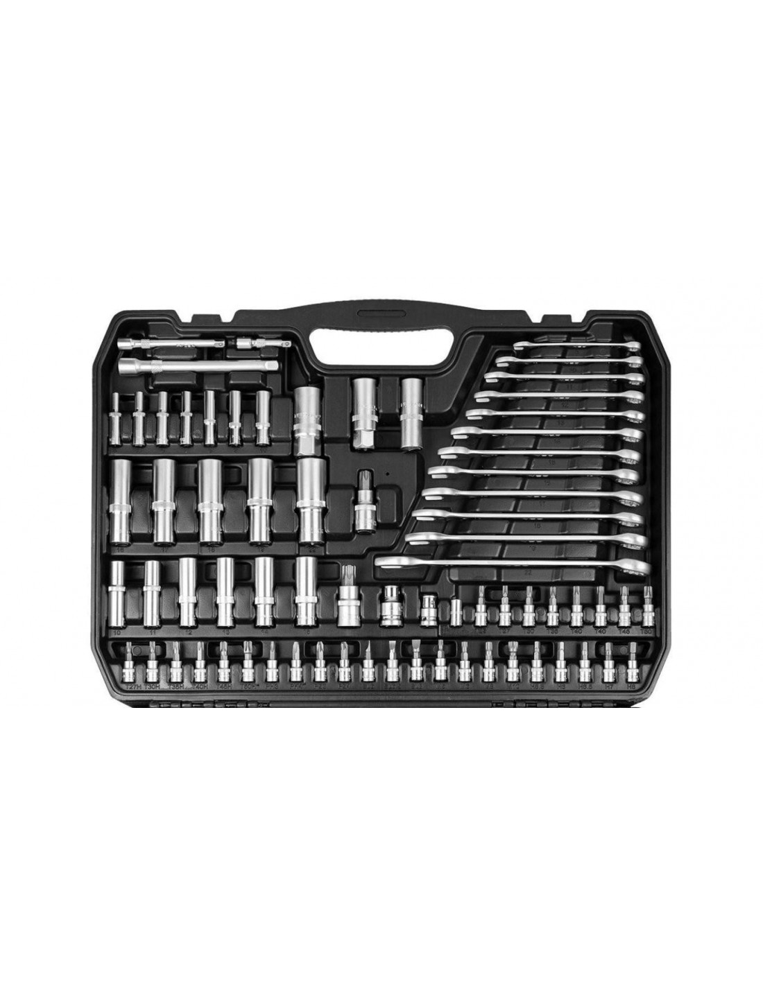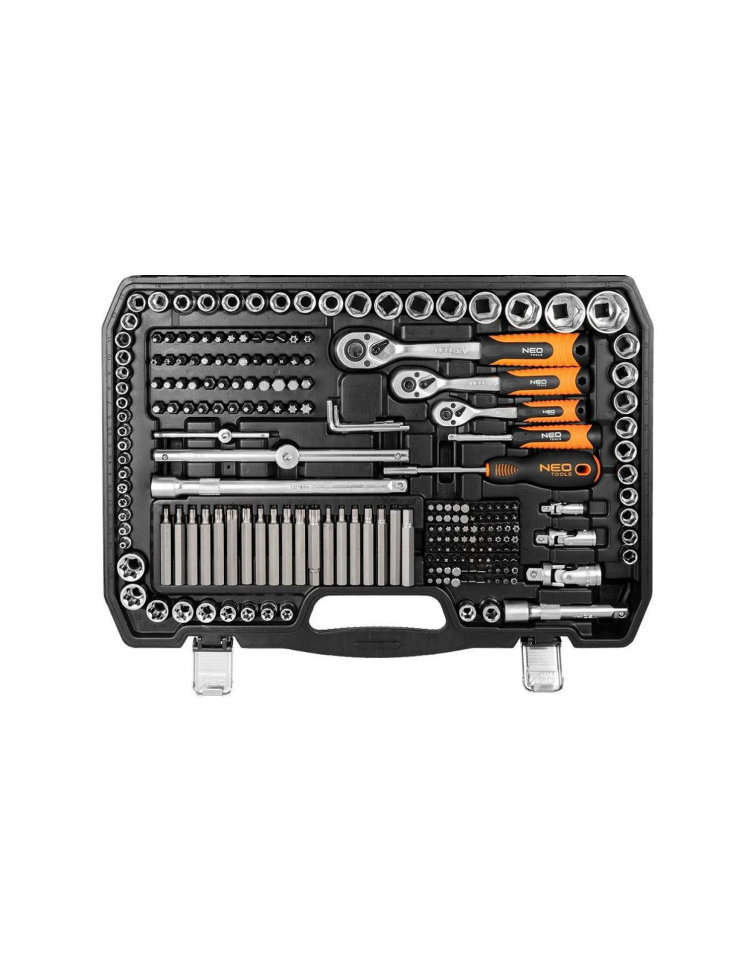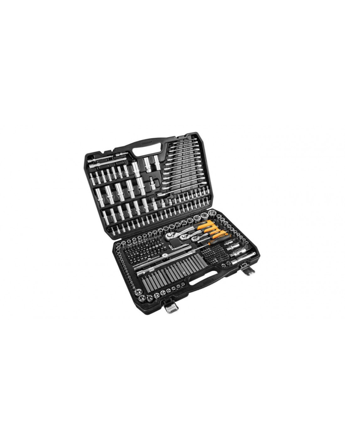 Zestaw kluczy 300 elementów 1/2”, 3/8”, 1/4” 10-218 marki NEO to zestaw oferowany w wygodnej walizce do przechowywania oraz transportowania narzędzi.