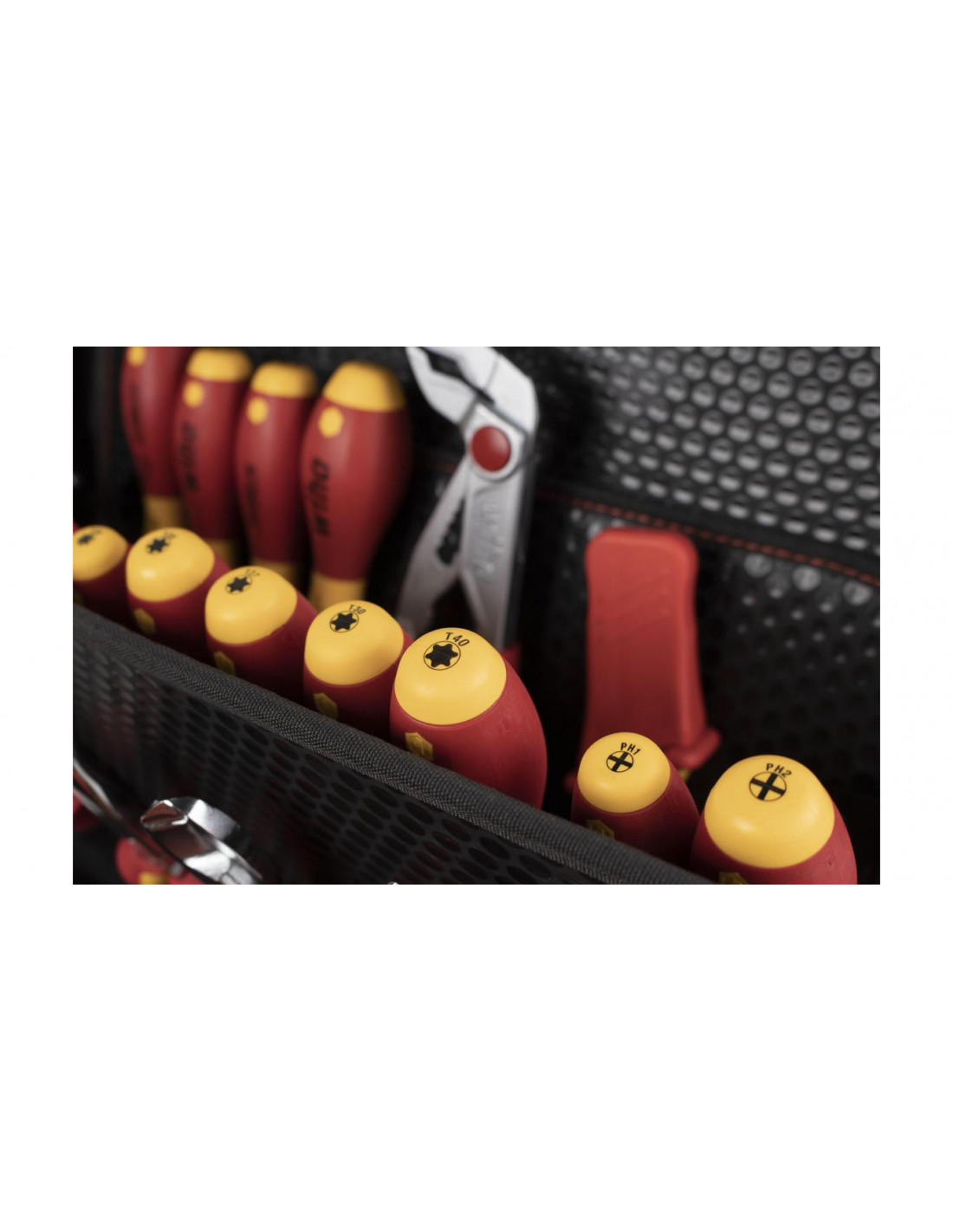 Izolowane narzędzia do pracy przy pojazdach elektrycznych, stacjach ładowania oraz skrzynkach ściennych.
