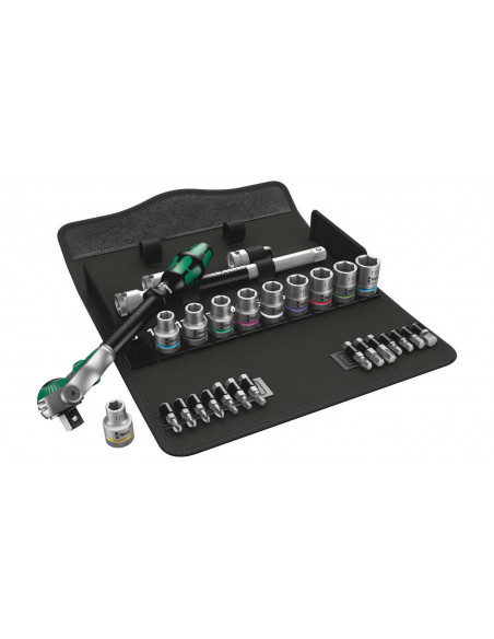 Niezwykle kompaktowe rozmieszczenie narzędzi na niewielkiej powierzchni. Zupełnie nowy zestaw w bardzo wytrzymałym i trwałym etui tekstylnym. Możliwość ustawienia w pozycji pionowej pozwalające na przejrzyste przechowywania na półce warsztatowej. Tkanina tekstylna na stronie zewnętrznej chroni powierzchnie narażone na zarysowania. Małe rozmiary i niewielka waga zapewniają dużą mobilność. Z systemem wyszukiwania narzędzi "Take it easy": oznaczenie kolorystyczne rozmiaru.