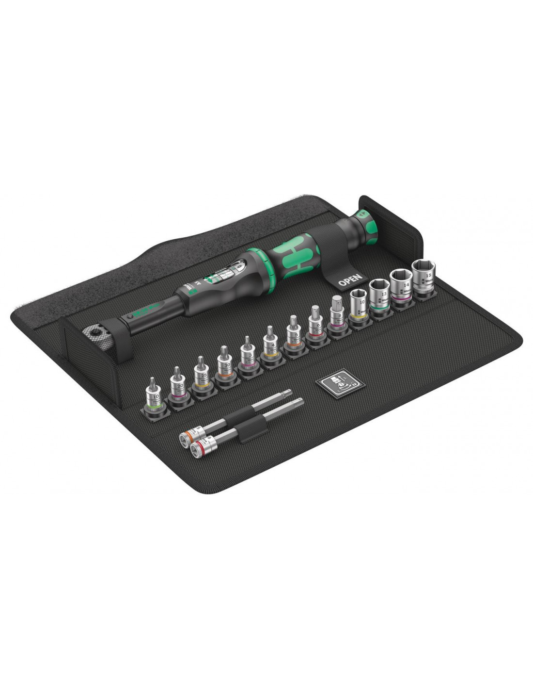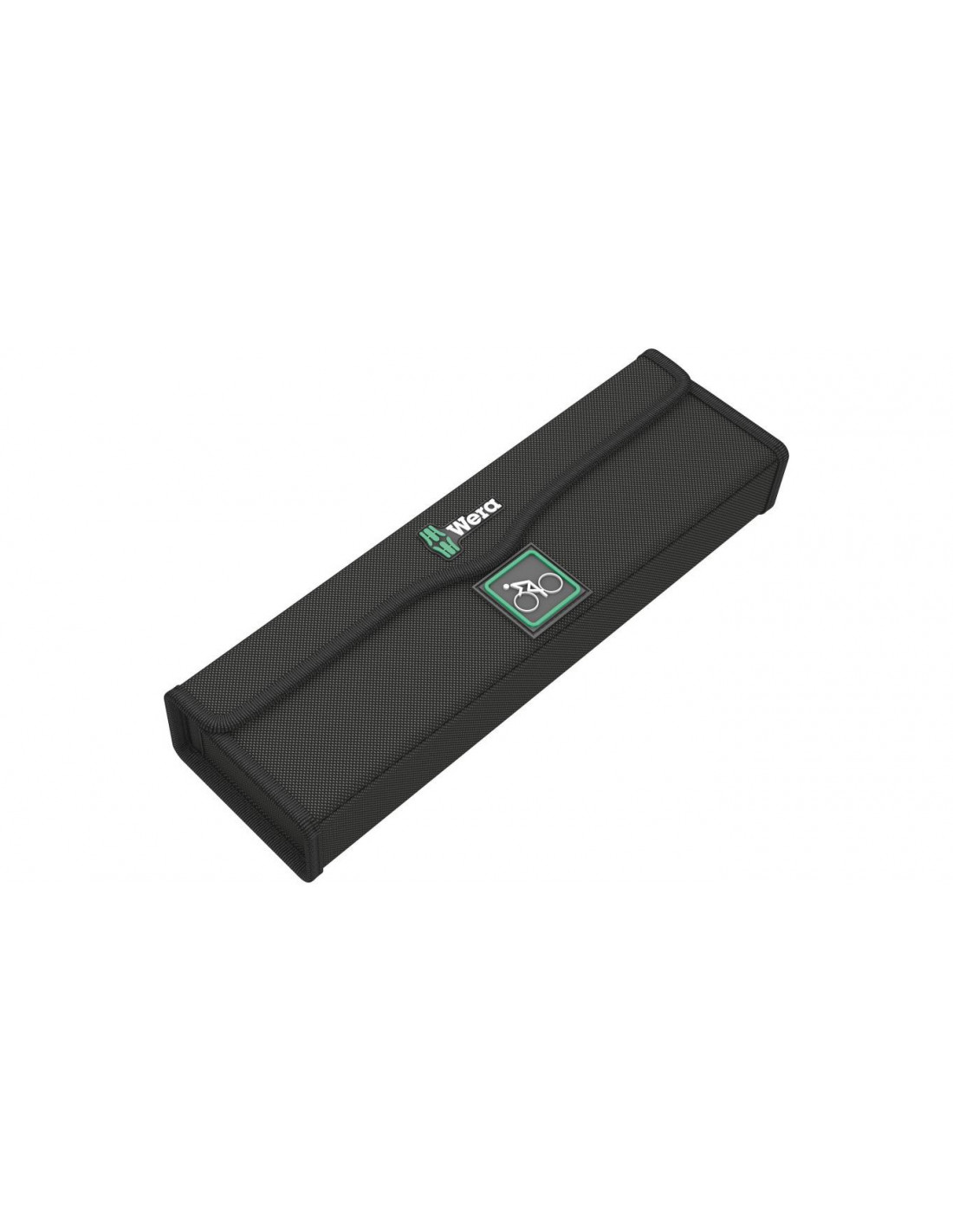 16-częściowy zestaw od specjalisty w dziedzinie narzędzi wkrętakowych, firmy Wera, dzięki niezawodnej kontroli momentów obrotowych zabezpiecza elementy, dla których istotny jest dokładny moment obrotowy i rozwiązuje najważniejsze problemy związane z połączeniami śrubowymi w rowerach. Klucz dynamometryczny ze słyszalnym i wyczuwalnym mechanizmem wyzwalanym po osiągnięciu zadanego momentu obrotowego w niepowtarzalnym wzornictwie firmy Wera. Bardzo wytrzymałe wykonanie i wysoka dokładność zgodnie z normą DIN EN ISO 6789-1:2017-07. Łatwe ustawienie i zabezpieczenie wartości domyślnej. Słyszalne i wyczuwalne zablokowanie po osiągnięciu wartości skali ułatwia również niezawodne ustawienie żądanego momentu obrotowego. Wytrzymały mechanizm wyzwalający uruchamia wyraźnie słyszalny i wyczuwalny sygnał po osiągnięciu ustawionego momentu obrotowego. Do dokręcania w prawo, z grzechotką z 45 zębami. Klucz dynamometryczny zapewniający wyjątkowo dużą oszczędność miejsca, uzupełniony o akcesoria odpowiednie dla danego zakresu momentu obrotowego i przystosowany do najbardziej popularnych połączeń śrubowych występujących w rowerach, zapakowany w solidne, zabezpieczające delikatne powierzchnie etui tekstylne. Zestaw zawiera: klucz dynamometryczny Click-Torque A 5, 1/4", 2,5 - 25 Nm, 4 końcówki wymienne klucza nasadowego 1/4", 7 bity nasadowe do śrub i wkrętów z gniazdem sześciokątnym Hex-Plus i 4 bitów nasadowych TORX . Końcówki wymienne klucza nasadowego i bity nasadowe z systemem oznaczenia kolorystycznego kluczy według ich wielkości "Take it easy" ułatwiającym i przyspieszającym odnajdywanie właściwego narzędzia. Bity nasadowe z funkcją przytrzymywania zapewniają wyjątkowo wygodną pracę bez ryzyka wypadnięcia śruby lub wkrętu z narzędzia. Niezwykle kompaktowe rozmieszczenie narzędzi na niewielkiej powierzchni. Etui tekstylne charakteryzujące się wysoką wytrzymałością i żywotnością. Tkanina tekstylna na stronie zewnętrznej chroni powierzchnie narażone na zarysowania. Małe rozmiary i niewielka waga zapewniają dużą mobilność. Bity nasadowe posiadają wszystkie zalety technologii bitów Wera, takie jak dokładność pasowania, odporność na zużycie i doskonałe właściwości minimalizujące bicie promieniowe.