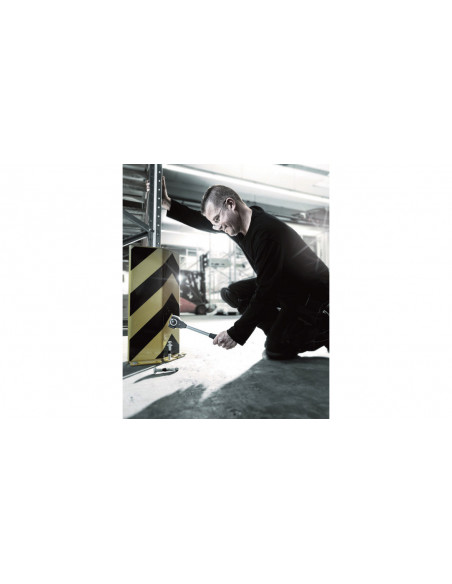 Grzechotka, którą można używać również jako młotka. Koloss to dwukierunkowa grzechotka do dużych obciążeń, która pozwala na przenoszenie momentu obrotowego wynoszącego co najmniej 600 Nm. Podwójny mechanizm zapadkowy i minimalny kąt pracy wynoszący 6° umożliwiają szybkie i precyzyjne pokręcanie również w wąskich przestrzeniach. A co najlepsze: absolutnie żadne uderzenie nie jest w stanie uszkodzić mechanizmu grzechotki. Wielokomponentowa rękojeść Kraftform zapewniająca optymalne przenoszenie obciążeń ściskających, rozciągających i udarowych; z uchwytem do przedłużacza Koloss 8780 C i sworznia centrującego Koloss 8781 C. Zestaw zawiera również: 1 podkładkę do ochrony materiałów i powierzchni, 1 przedłużacz Koloss do przenoszenia jeszcze większych momentów obrotowych, 1 trzpień odblokowujący i 1 etui do mocowania na pasku, dzięki któremu narzędzie jest zawsze pod ręką.