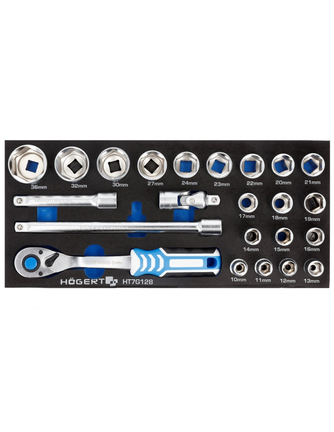 nasadki HT1A210 do HT1A236, grzechotka 1/2” HT1R322, pokrętło 254 mm HT1A727, przedłużka 1/2” 127 mm HT1A724, przegub 1/2” HT1A757;