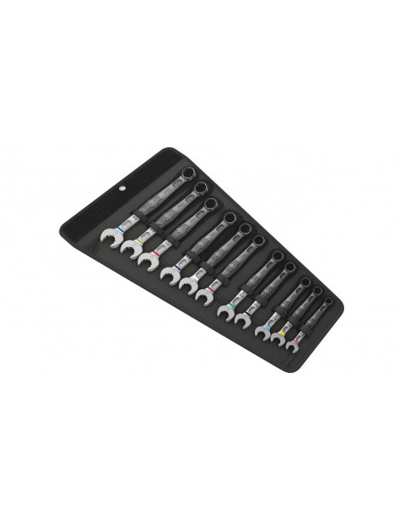 Ponieważ coraz więcej jest sytuacji, w których przestrzeń montażowa jest bardzo ograniczona, potrzebne są narzędzia, za pomocą których użytkownicy będą mogli z powodzeniem pracować również w takich warunkach. Wąskie przestrzenie montażowe wymagają dodatkowych punktów osadzenia dla narzędzi. Czy zatem klucze płaskie można zmodyfikować w taki sposób, aby zwiększyć możliwości osadzenia narzędzia? Połączenie szczęki odchylonej pod kątem 7,5° i podwójnej geometrii sześciokątnej podwaja liczbę punktów osadzenia. Podczas kilkukrotnie powtarzanych obrotów o 180° wokół osi wzdłużnej możliwe jest osadzenia klucza co 15° na nakrętce lub łbie śruby. Klucz Joker 6003 z przemyślaną geometrią szczęk znacznie rozszerza zakres zastosowań w wąskich przestrzeniach. Joker 6003 automatycznie odnajduje odpowiedni punkt podparcia po każdym obrocie. Smukła, a jednocześnie wytrzymała strona oczkowa klucza jest odchylona pod kątem 15° w stosunku do osi narzędzia. Wysokiej jakości powierzchnia zapewnia bardzo dobrą i długotrwałą ochronę antykorozyjną. System wyszukiwania narzędzi Wera "Take it easy": system oznaczenia kolorystycznego kluczy według rozmiaru. Torby Joker nadają się do montażu na ścianie, półce, wózku warsztatowym, a dzięki rzepom są kompatybilne z systemem Wera 2go.