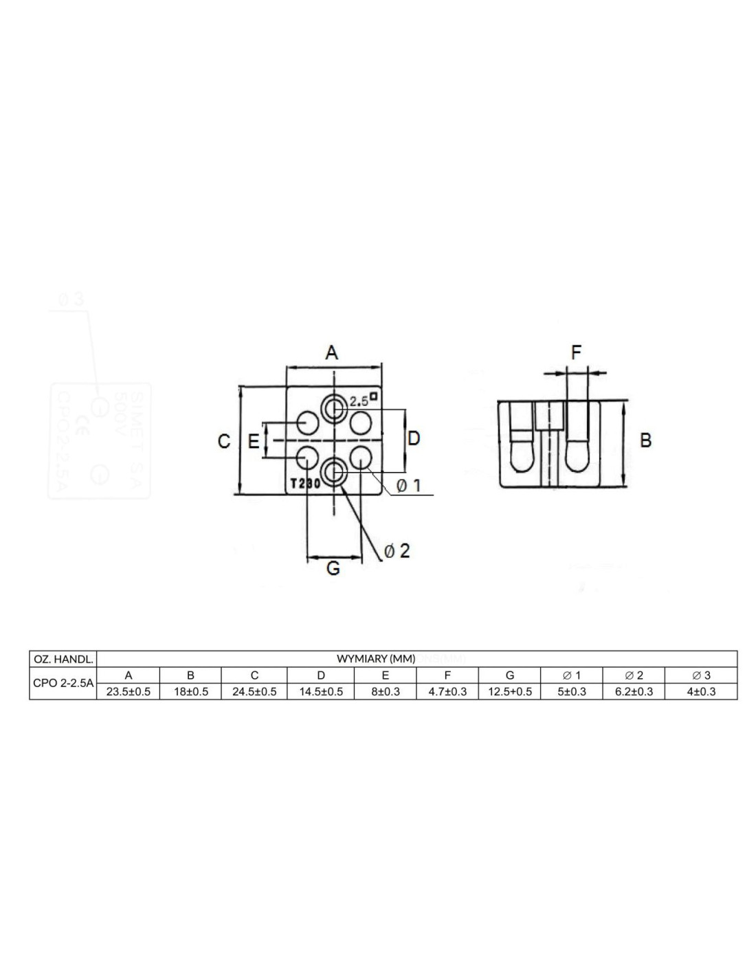 - Przekrój przyłączanego przewodu jednodrutowego [mm2]: 2,5