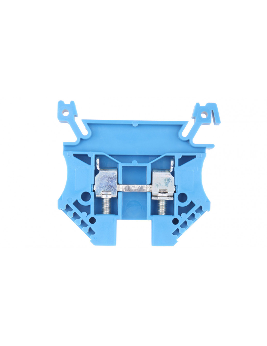 Złączka szynowa gwintowa w kolorze niebieskim. Posiada obudowę wykonaną z tworzywa termoplastycznego, które posiada wyjątkowe właściwości. Do jego zalet zaliczają się odporność i wytrzymałość. Złączka służy do zamontowania na szynie montażowej.