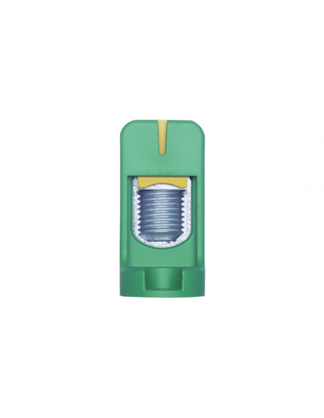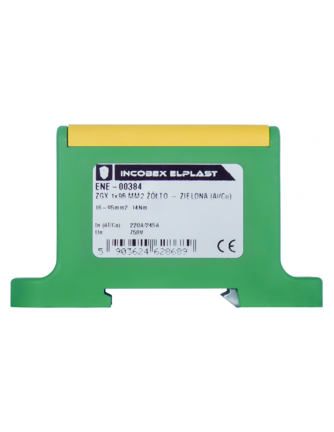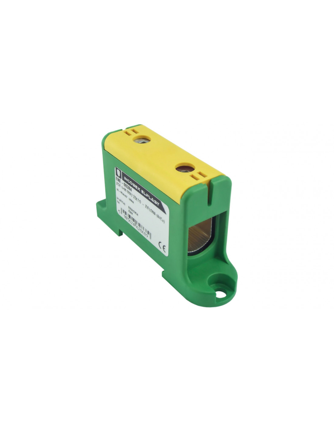 Uniwersalna złączka śrubowa ZGX, jednobiegunowa z dwoma otworami, w kolorze żółto-zielonym, dla przewodów o przekroju od 16 do 95 mm2, w kompaktowej obudowie o małych wymiarach, wykonanej z tworzywa PA6 bez halogenowego, sklasyfikowanego w najwyższym standardzie palności UL V-0 (test pionowego palenia), możliwy montaż złączki zarówno na szynie TH jaki i bezpośrednio na płycie montażowej, z zaciskami na śrubę sześciokątną, które pozwalają na łatwe i mocne dokręcanie przewodu. Złączki ZGX są testowane i certyfikowane zgodnie z normą EN 60947-7-1:2012 oraz EN 61238-1.